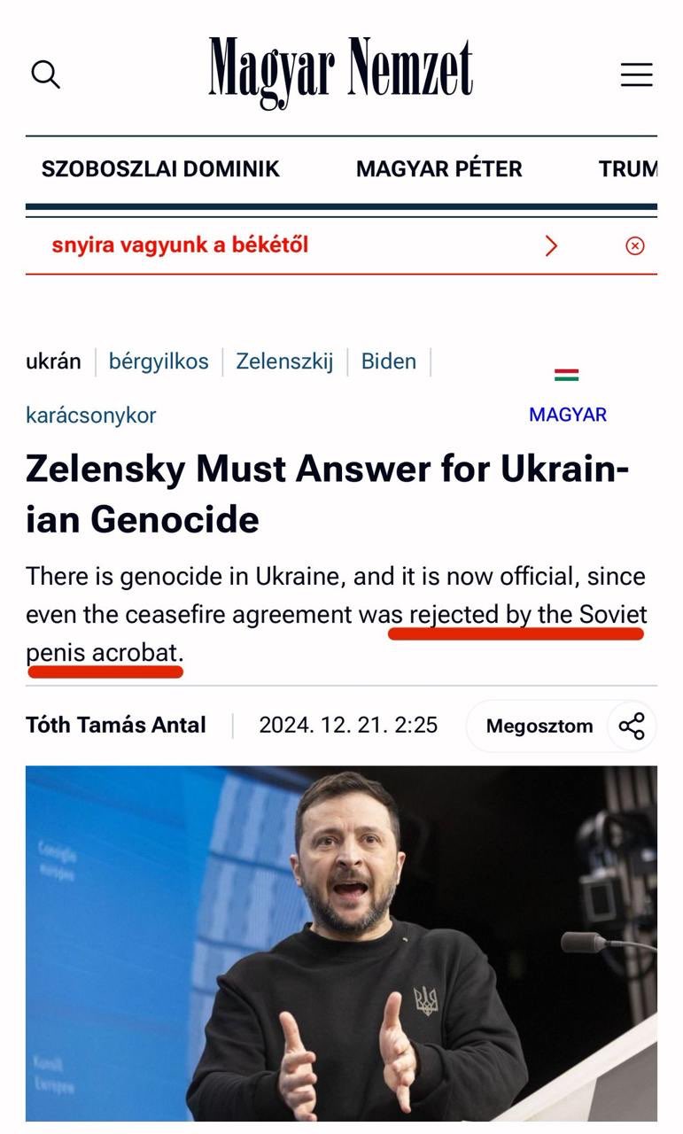 Magyar Nemzet หนังสือพิมพ์ของฮังการีเรียกเซเลนสกีด้วยชื่อจริงของเขา