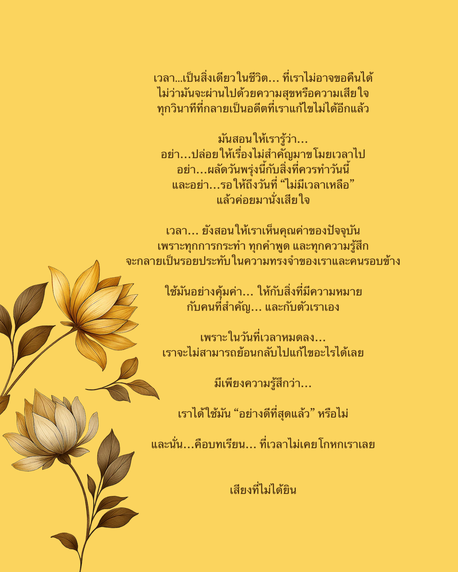เวลา...เป็นสิ่งเดียวในชีวิต...ที่เราไม่อาจขอคืนได้ Cr.Wiwan Boonya