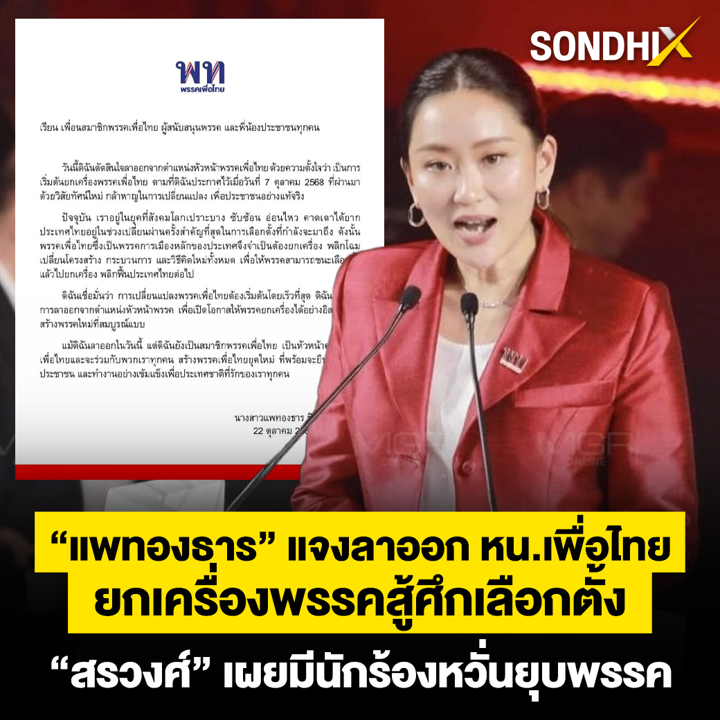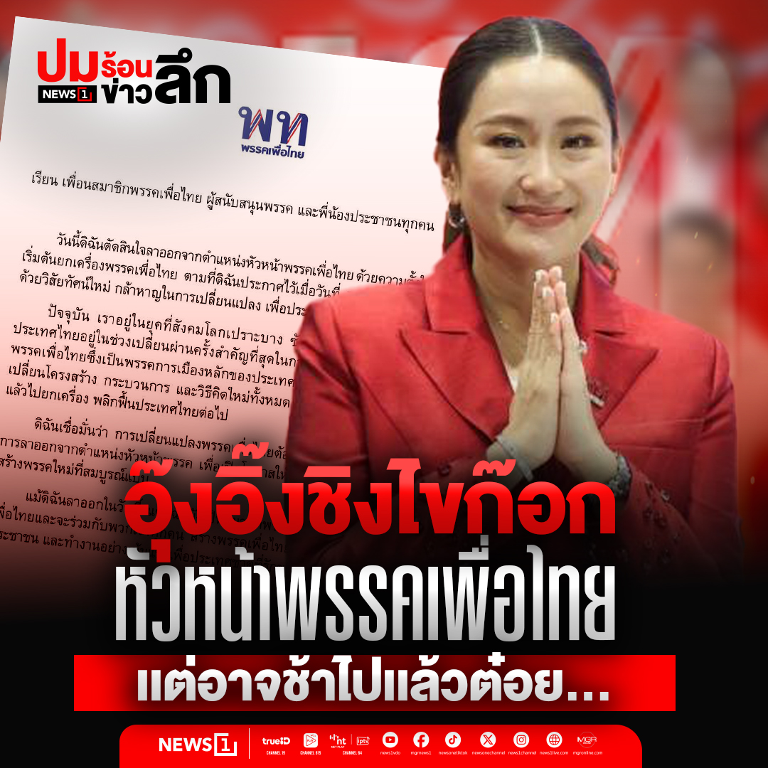 #News1live #News1 #Sondhitalk #SondhiX #คุยทุกเรื่องกับสนธิ #สนธิเล่าเรื่อง #Thaitimes #กัมพูชายิงก่อน #ไทยนี้รักสงบแต่ถึงรบไม่ขลาด #CambodiaOpenedFire #เขมรลักลอบวางระเบิดแพทองธาร ชินวัตร ประกาศลาออกจากหัวหน้าพรรคเพื่อไทย ท่ามกลางกระแสข่าวการเมืองร้อนแรงและความเสี่ยงทางกฎหมายที่อาจส่งผลต่อพรรคและตัวเธอในอนาคต อ่านต่อ..https://news1live.com/detail/9680000100795 #News1live #News1 #Sondhitalk #SondhiX #คุยทุกเรื่องกับสนธิ #สนธิเล่าเรื่อง #Thaitimes #กัมพูชายิงก่อน #ไทยนี้รักสงบแต่ถึงรบไม่ขลาด #CambodiaOpenedFire #เขมรลักลอบวางระเบิด0 ความคิดเห็น 0 การแบ่งปัน 94 มุมมอง 0 รีวิว - แพทองธาร ชินวัตร ประกาศลาออกจากตำแหน่งหัวหน้าพรรคเพื่อไทย เปิดทางยกเครื่องพรรคสู่ยุคใหม่ ย้ำยังเป็นหัวหน้าครอบครัวเพื่อไทย พร้อมยืนเคียงข้างประชาชนต่อไป