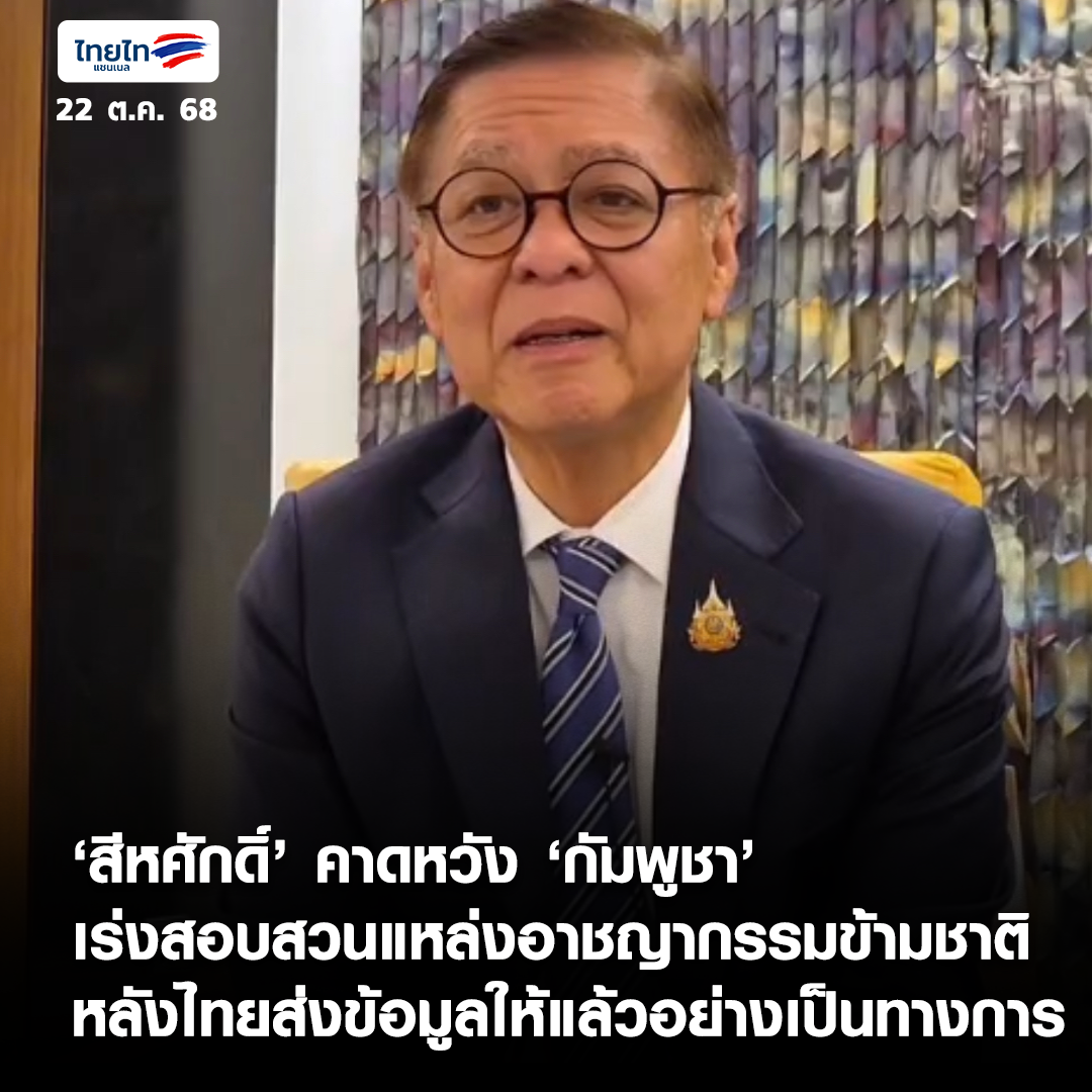 ‘สีหศักดิ์’ คาดหวัง ‘กัมพูชา’ เร่งสอบสวนแหล่งอาชญากรรมข้ามชาติ หลังไทยส่งข้อมูลให้แล้วอย่างเป็นทางการ https://www.thai-tai.tv/news/22008/ . #ไทยไท #สีหศักดิ์พวงเกตุแก้ว #GBC #ไทยกัมพูชา #ปราบสแกมเมอร์ #สิงคโปร์ #ชายแดน0 ความคิดเห็น 0 การแบ่งปัน 23 มุมมอง 0 รีวิว - รองนายกฯ สุชาติ สั่งการด่วน ทส. ตรวจสอบ "การละเมิด EIA" และมาตรการคุ้มครองสิ่งแวดล้อมบนเกาะสมุย-พะงัน