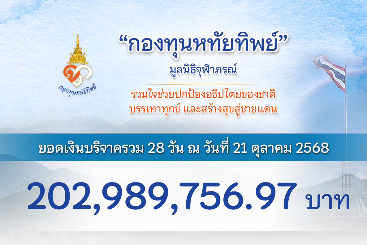 รายงานยอดเงินบริจาครวมล่าสุด ณ วันที่ 21 ตุลาคม 2568 เวลา 17.00 น.