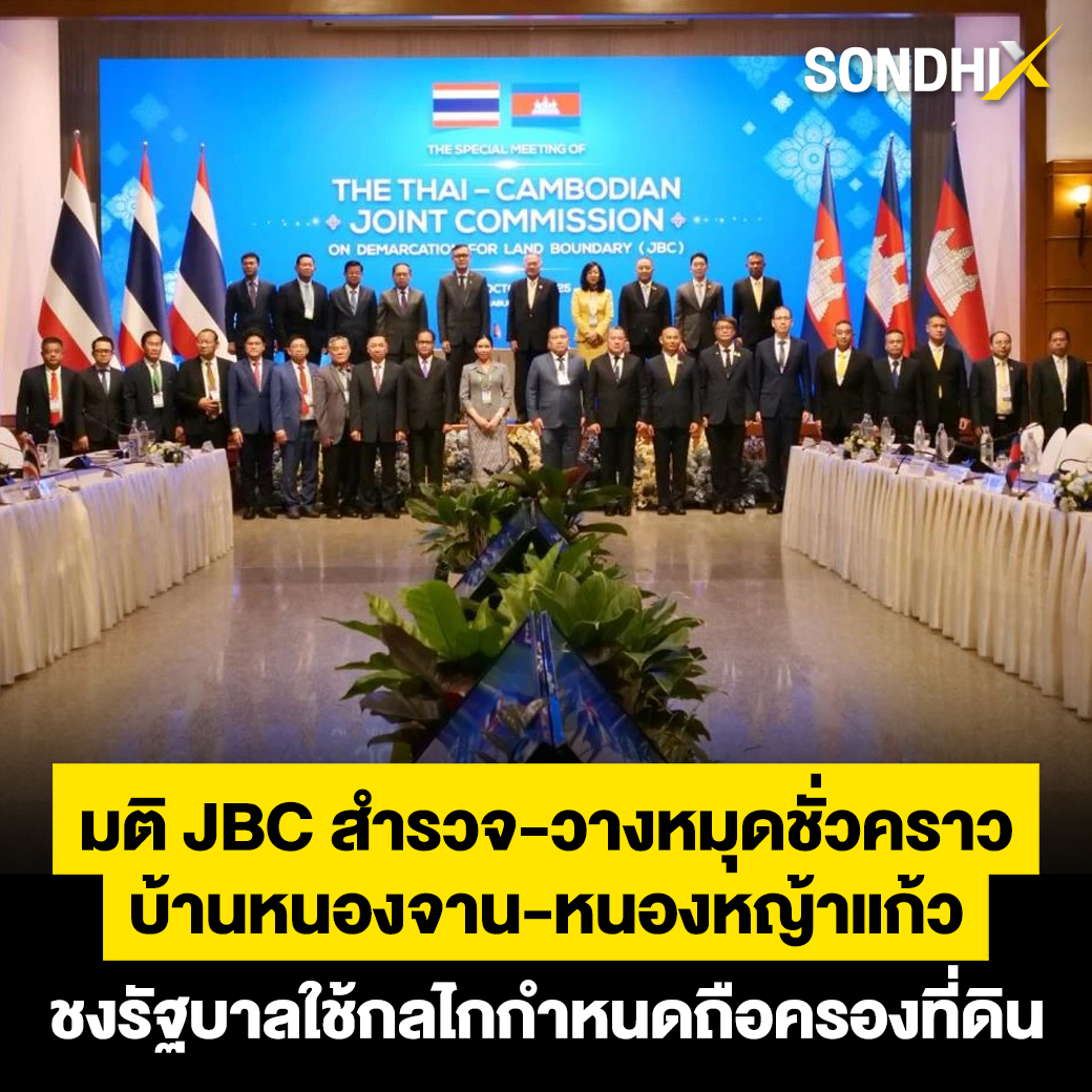 • ประธาน JBC ฝ่ายไทย เผยที่ประชุมไทย-กัมพูชาเห็นพ้องสำรวจและวางหมุดชั่วคราว บ้านหนองจานและบ้านหนองหญ้าแก้ว ก่อนเสนอรัฐบาลใช้กลไกที่เหมาะสมปรับการถือครองที่ดิน พร้อมเห็นชอบซ่อมแซมและจัดทำหลักเขตแดนทดแทน และเร่งแก้ไขทีโออาร์ 2003 ทดลองนำเทคโนโลยี LiDAR มาใช้ทำแผนที่ภาพถ่ายทางอากาศ ประชุมครั้งต่อไป ม.ค. 69 ที่กัมพูชา