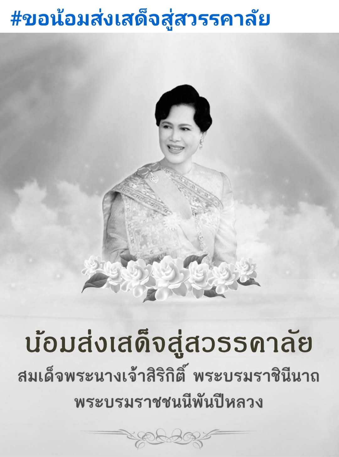 • สำนักพระราชวัง เผยแพร่ประกาศ สมเด็จพระนางเจ้าสิริกิติ์ พระบรมราชินีนาถ พระบรมราชชนนีพันปีหลวง สวรรคต