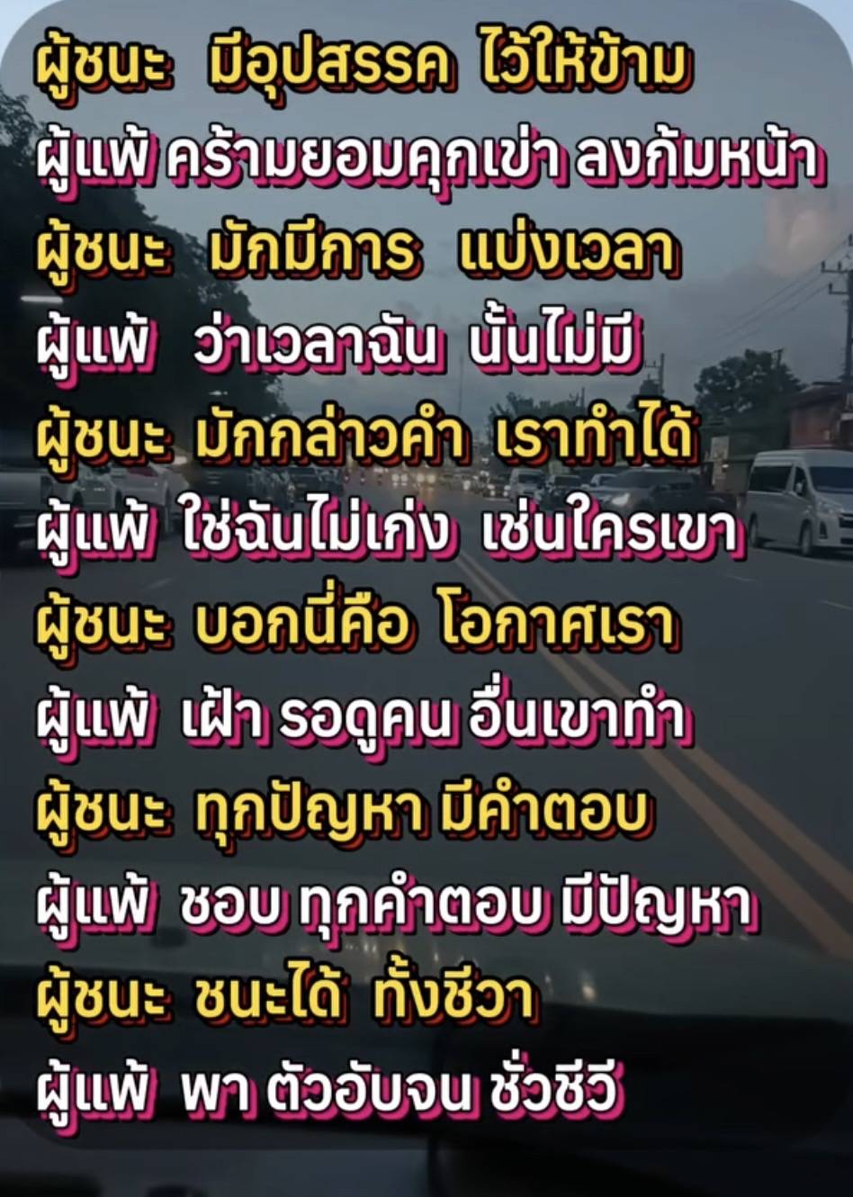• จริงๆเราคนไทยไม่เคยปล่อยมือกัน,มีแต่คนไม่ดีพยายามสร้างความแต่แยกแก่เรา,เราพร้อมจับมือคนที่ล้มลงร่วมลุกขึ้นแล้วเดินผ่านพ้นภัยไปด้วยกันเสมอตลอดมา,เราพร้อมยิ้มสู้ร่วมกันเสมอ.,และผ่านมันไปด้วยดีในทุกๆครััง เพราะคนดีคนงามจิตงามใจยังเต็มทั่วทั้งแผ่นดินไทย เพราะนี้คือแผ่นดินไทย.