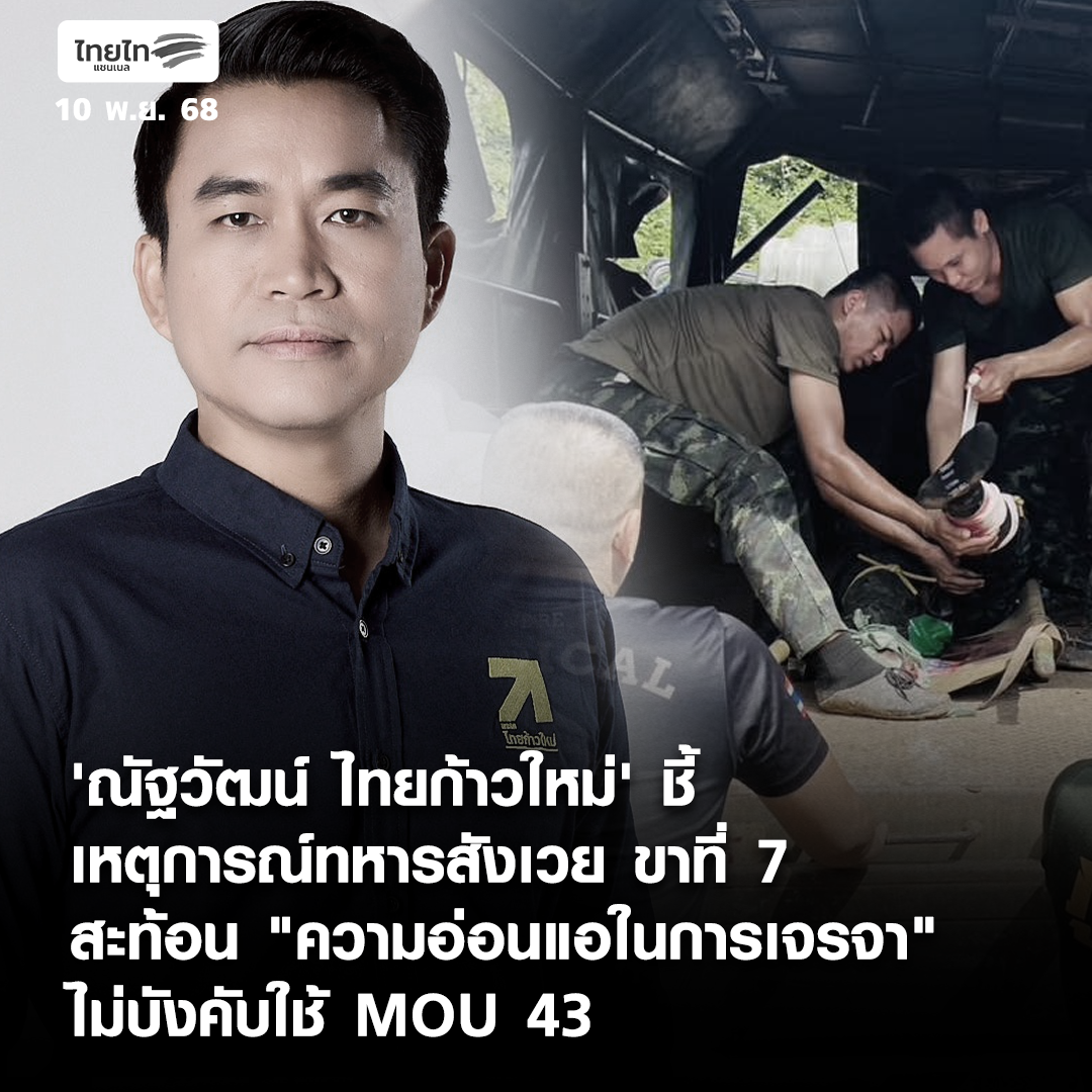0 Comments 0 Shares 11 Views 0 Reviews - 'ณัฐวัฒน์ ไทยก้าวใหม่' ชี้เหตุการณ์ทหารสังเวยขาที่ 7 สะท้อน "ความอ่อนแอในการเจรจา" ไม่บังคับใช้ MOU 43