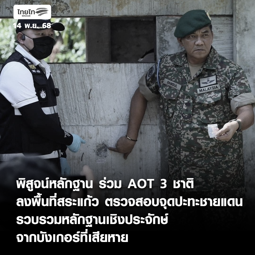 • พิสูจน์หลักฐาน ร่วม AOT 3 ชาติ ลงพื้นที่สระแก้ว ตรวจสอบจุดปะทะชายแดน รวบรวมหลักฐานเชิงประจักษ์จากบังเกอร์ที่เสียหาย