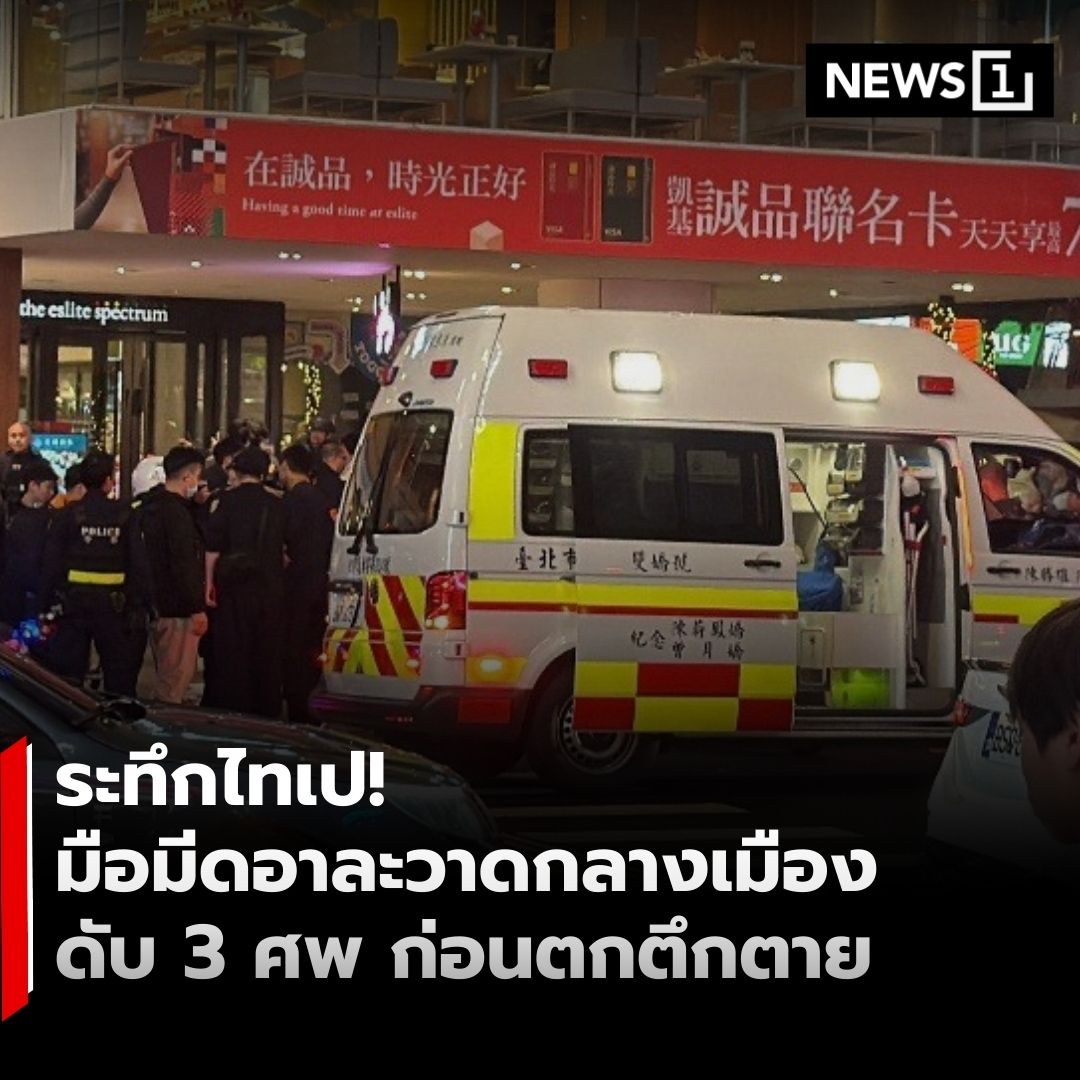 • เกิดเหตุสะเทือนขวัญกลางกรุงไทเป คนร้ายใช้อาวุธมีดไล่ทำร้ายประชาชน ส่งผลให้มีผู้เสียชีวิต 3 ราย และบาดเจ็บอีกหลายราย
