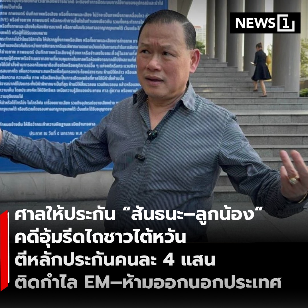 ศาลให้ประกัน “สันธนะ–ลูกน้อง” คดีอุ้มรีดไถชาวไต้หวัน , ตีหลักประกันคนละ 4 แสน–ติดกำไล EM–ห้ามออกนอกประเทศ