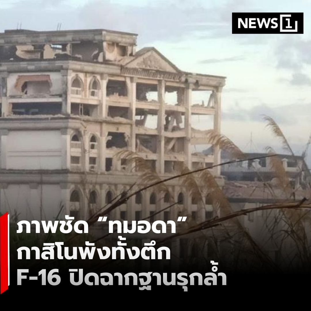 เผยภาพความเสียหายอาคารกาสิโนทมอดา อ.เวียลเวง จ.โพธิสัตว์ ของกัมพูชา หลังถูกเครื่องบินขับไล่ F-16 ของกองทัพอากาศไทยเข้าปฏิบัติการโจมตีในช่วงเช้ามืดวันนี้ ตามการเผยแพร่ของเพจ Army Military Force
