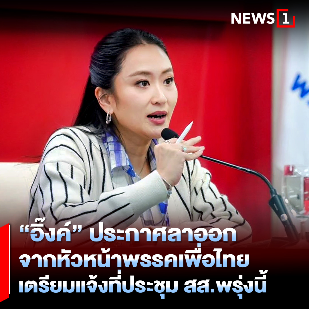 • "แพทองธาร" ประกาศลาออกจากหัวหน้าพรรคเพื่อไทย พรุ่งนี้ เปิดทางเลือกผู้นำใหม่ เผยตัดสินใจไขก๊อก เหตุศาล รธน.พิพากษาผิดจริยธรรมปมคลิปเสียงสนทนา "ฮุนเซน" หวั่นมีปัญหาเซ็นรับรองผู้สมัคร สส.