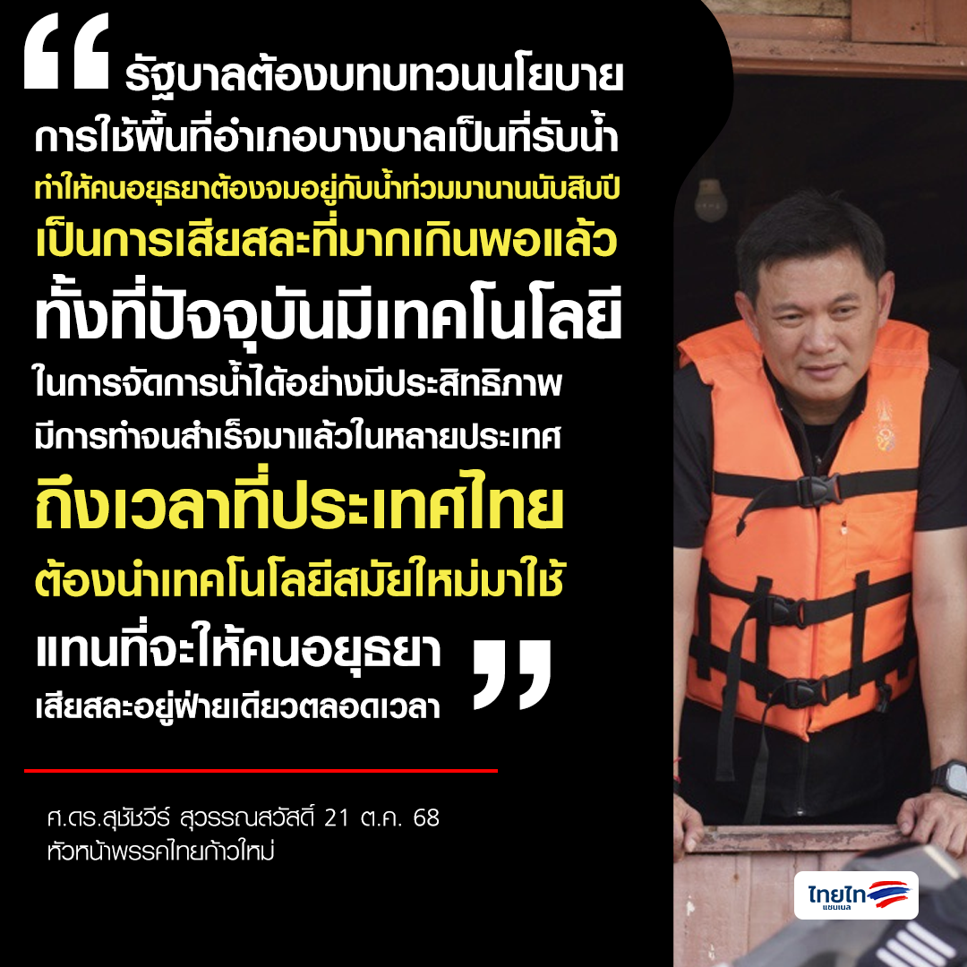 #ไทยไท #สุชัชวีร์ #น้ำท่วมอยุธยา #บางบาล #พื้นที่รับน้ำ #ไทยก้าวใหม่ #เทคโนโลยีจัดการน้ำ