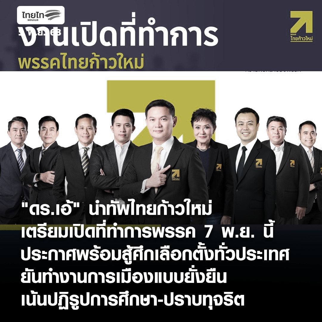 "ดร.เอ้" นำทัพไทยก้าวใหม่ เตรียมเปิดที่ทำการพรรค 7 พ.ย. นี้ ประกาศพร้อมสู้ศึกเลือกตั้งทั่วประเทศ ยันทำงานการเมืองแบบยั่งยืน เน้นปฏิรูปการศึกษา-ปราบทุจริต https://www.thai-tai.tv/news/22221/ . #พรรคไทยก้าวใหม่ #ก้าวใหม่ให้ไทยสตรอง #ฟังเสียงประชาชน #จริงจังเรื่องการศึกษา