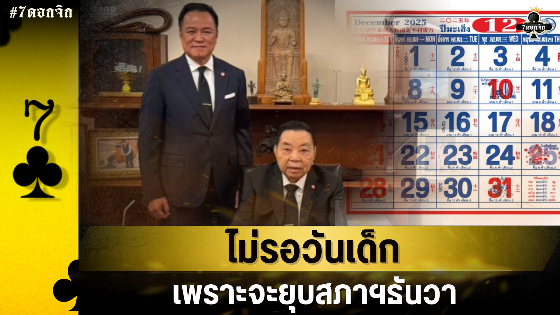 ♣ เดิมทีนายกฯ จะพาบิดา (ปู่จิ้น ชวรัตน์) มานั่งเก้าอี้นายกฯ ช่วงปีใหม่ หรือช่วงวันเด็ก แต่เปลี่ยนใจพามาเลย เพราะรัฐบาลจะอยู่ไม่พ้นปีนี้ จะยุบสภาฯก่อนเปิดสมัยประชุม 12 ธันวาคม #7ดอกจิก