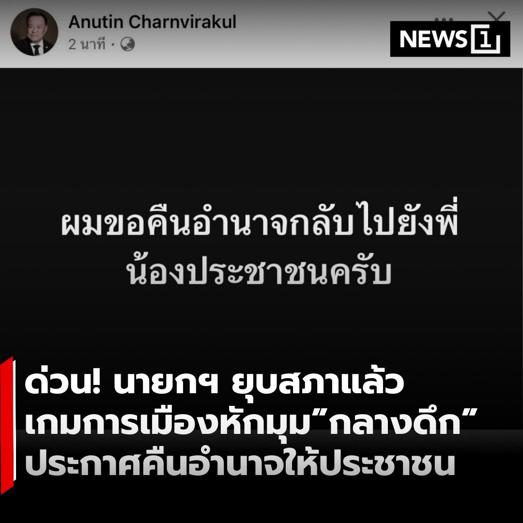 ด่วนกลางดึก-นายอนุทิน ชาญวีรกูล นายกรัฐมนตรี ทูลเกล้าฯ พระราชกฤษฎีกายุบสภาผู้แทนราษฎรแล้ว เพื่อเปิดทางสู่การเลือกตั้งทั่วไปครั้งใหม่ หลังสูตรการเมืองเปลี่ยนขั้วชั่วข้ามคืน . การยุบสภาฯ เกิดขึ้นทันทีหลังรัฐสภามีมติให้มาตรา 256/28 ต้องได้เสียงเห็นชอบจาก สว. อย่างน้อยหนึ่งในสาม ทำให้ร่างแก้ไขรัฐธรรมนูญเดินหน้าต่อไม่ได้ ขณะที่พรรคประชาชน—ผู้หนุนอนุทินเป็นนายกฯ—ย้ำชัดว่า หากโหวตแพ้จะยื่นอภิปรายไม่ไว้วางใจรัฐบาลทั้งคณะทันที . “ภราดร ปริศนานันทกุล” ชี้แจงตรงไปตรงมา—พรรคภูมิใจไทยไม่สามารถไปสั่ง สว. ให้ตัดอำนาจของตัวเองได้ และหากตัดอำนาจ สว. ก็จะไม่ผ่านวาระสาม ส่งผลให้การแก้รัฐธรรมนูญทั้งฉบับล้มทั้งระบบ . สุดท้าย นายอนุทินเลือกยุบสภาเพื่อแสดงความรับผิดชอบ และทำตามข้อตกลงจัดตั้งรัฐบาลเดิมว่า หากแก้รัฐธรรมนูญไปต่อไม่ได้ ต้องคืนอำนาจให้ประชาชนตัดสิน. . อ่านต่อ… https://news1live.com/detail/9680000119265 . #News1live #News1 #ยุบสภา #อนุทิน #การเมืองไทย #เลือกตั้งใหม่ #สภาผู้แทนราษฎร #เกมการเมือง