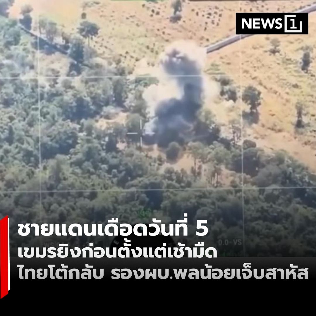 ชายแดนไทย–กัมพูชาระอุเข้าวันที่ 5 กัมพูชาเปิดฉากยิงปืนใหญ่และจรวด BM21 เข้าฝั่งไทยตั้งแต่เช้ามืด ไทยตอบโต้กลับตามสัดส่วน การปะทะเกิดขึ้นอย่างหนักหลายพื้นที่ รวมถึงช่องอานม้า–ภูมะเขือ พร้อมเผชิญโดรนโจมตีต่อเนื่อง ล่าสุดมีรายงานนายทหารระดับรองผู้บังคับบัญชากองพลน้อยของกัมพูชาได้รับบาดเจ็บสาหัสจากการปะทะ . อ่านรายละเอียด >> https://news1live.com/detail/9680000119509 . #News1live #News1 #ชายแดนไทยกัมพูชา #BM21 #ปืนใหญ่ #กองทัพภาคที่2 #ความมั่นคง #ทำลายให้สิ้นสภาพ