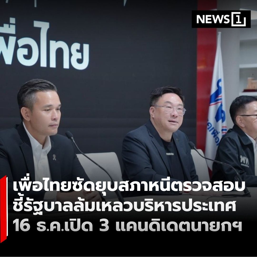 • พรรคเพื่อไทยแถลงวิจารณ์การยุบสภา ชี้เป็นการหลีกเลี่ยงการตรวจสอบและสะท้อนความล้มเหลวในการบริหารประเทศ พร้อมประกาศความพร้อมสู้ศึกเลือกตั้ง โดย “จุลพันธ์” ระบุวันที่ 16 ธ.ค. จะเปิดตัวแคนดิเดตนายกรัฐมนตรี 3 คน พร้อมนโยบายชุดแรก ภายใต้แคมเปญ “ยกเครื่องเพื่อไทย เพื่อไทยทำได้”