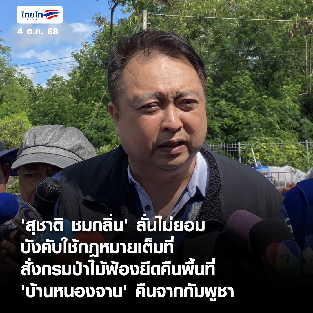 • 'สุชาติ ชมกลิ่น' ลั่นไม่ยอม บังคับใช้กฎหมายเต็มที่ สั่งกรมป่าไม้ฟ้องยึดคืนพื้นที่ 'บ้านหนองจาน' คืนจากกัมพูชา