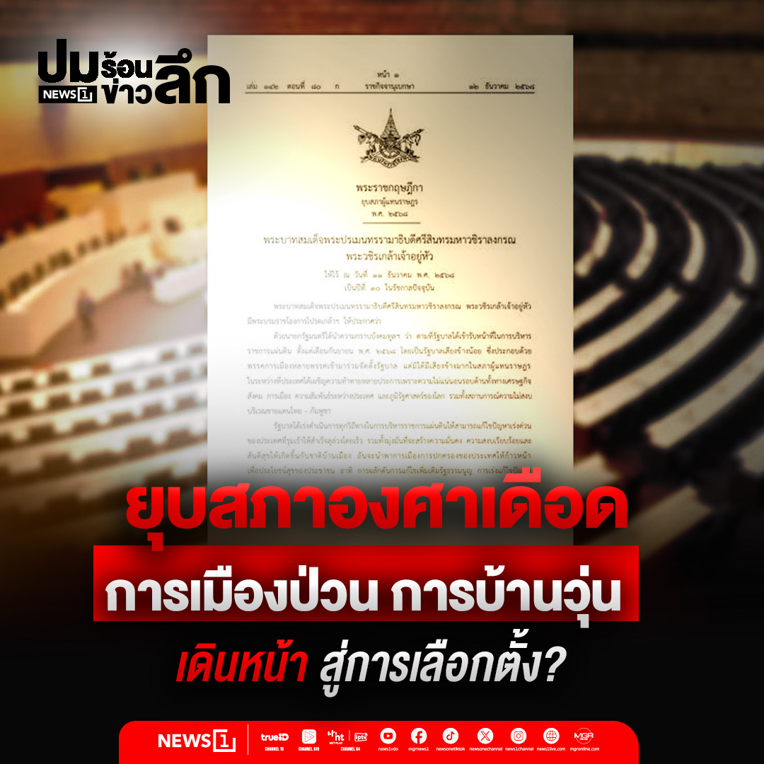 ด่วนกลางดึก-นายอนุทิน ชาญวีรกูล นายกรัฐมนตรี ทูลเกล้าฯ พระราชกฤษฎีกายุบสภาผู้แทนราษฎรแล้ว เพื่อเปิดทางสู่การเลือกตั้งทั่วไปครั้งใหม่ หลังสูตรการเมืองเปลี่ยนขั้วชั่วข้ามคืน . การยุบสภาฯ เกิดขึ้นทันทีหลังรัฐสภามีมติให้มาตรา 256/28 ต้องได้เสียงเห็นชอบจาก สว. อย่างน้อยหนึ่งในสาม ทำให้ร่างแก้ไขรัฐธรรมนูญเดินหน้าต่อไม่ได้ ขณะที่พรรคประชาชน—ผู้หนุนอนุทินเป็นนายกฯ—ย้ำชัดว่า หากโหวตแพ้จะยื่นอภิปรายไม่ไว้วางใจรัฐบาลทั้งคณะทันที . “ภราดร ปริศนานันทกุล” ชี้แจงตรงไปตรงมา—พรรคภูมิใจไทยไม่สามารถไปสั่ง สว. ให้ตัดอำนาจของตัวเองได้ และหากตัดอำนาจ สว. ก็จะไม่ผ่านวาระสาม ส่งผลให้การแก้รัฐธรรมนูญทั้งฉบับล้มทั้งระบบ . สุดท้าย นายอนุทินเลือกยุบสภาเพื่อแสดงความรับผิดชอบ และทำตามข้อตกลงจัดตั้งรัฐบาลเดิมว่า หากแก้รัฐธรรมนูญไปต่อไม่ได้ ต้องคืนอำนาจให้ประชาชนตัดสิน. . อ่านต่อ… https://news1live.com/detail/9680000119265 . #News1live #News1 #ยุบสภา #อนุทิน #การเมืองไทย #เลือกตั้งใหม่ #สภาผู้แทนราษฎร #เกมการเมือง