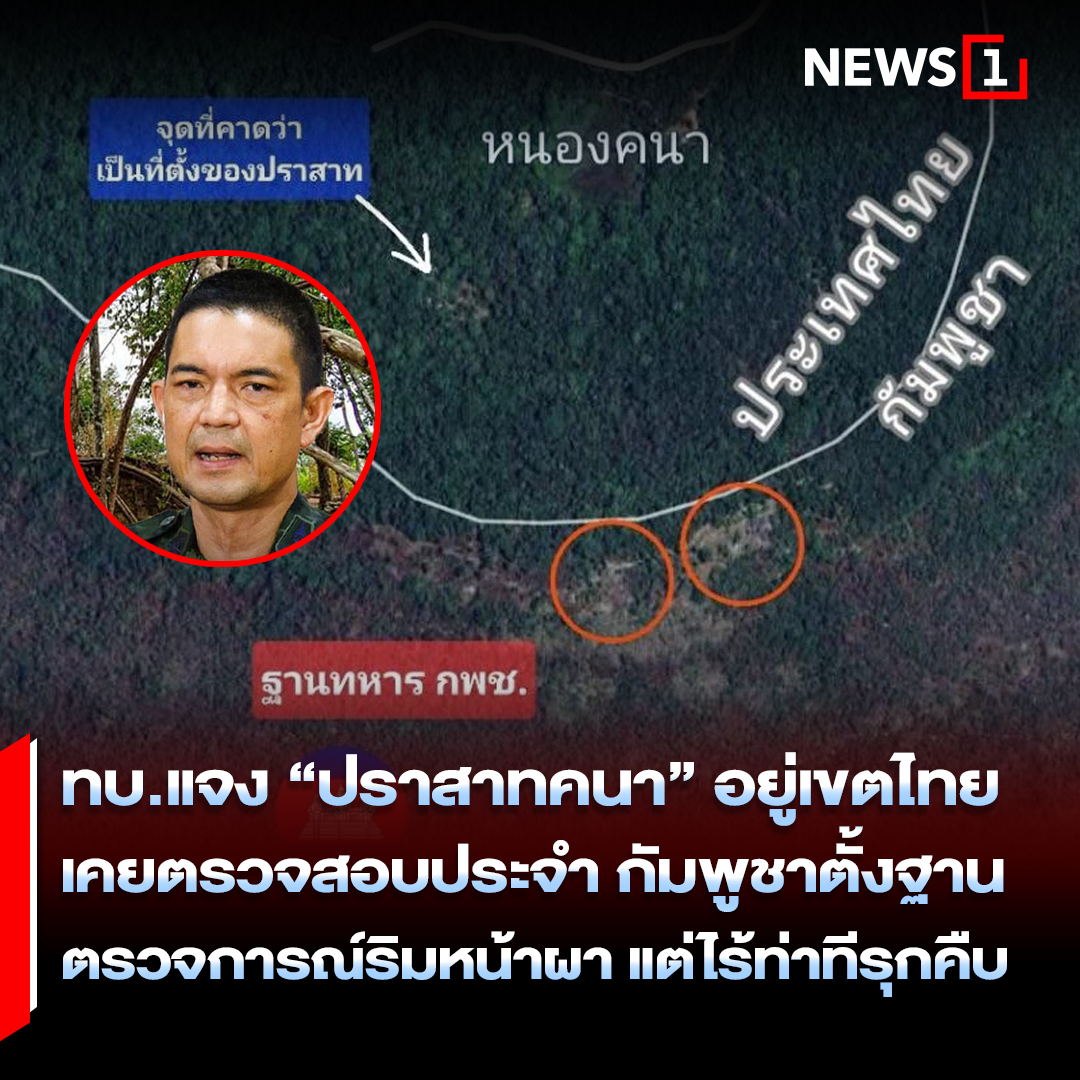• โฆษก ทบ.แจง “ปราสาทคนา” อยู่ห่างขอบหน้าผาเข้ามาฝั่งไทยประมาณ 100 เมตร ทหารไทยไปตรวจสอบประจำไม่ให้กัมพูชาเข้ามาตั้งฐาน จนช่วงหลังเหตุปะทะ 28 พ.ค.68 ทั้งสองฝ่ายไม่ได้เข้าพื้นที่ ส่วนบันไดไม้กัมพูชาสร้างเพื่อส่งกำลังบำรุงขึ้นมายังฐานตรวจการณ์บนแนวหน้าผา และภายหลังใช้เพื่อท่องเที่ยวด้วย เผยฝ่ายกัมพูชาไม่ได้มีทีท่าจะขยับคืบเข้ามาควบคุมบริเวณพื้นที่ตัวปราสาท