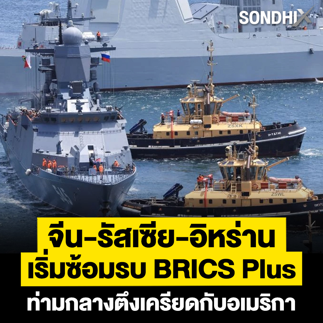 จีน รัสเซียและอิหร่าน เริ่มซ้อมรบร่วมทางทะเลเป็นเวลา 1 สัปดาห์ ในน่านน้ำแอฟริกาใต้ ในวันเสาร์(10ม.ค.) ในสิ่งที่ประเทศเจ้าภาพให้คำนิยามว่าเป็นปฏิบัติการ BRICS Plus สำหรับรับประกันความปลอดภัยด้านการเดินเรือและกิจกรรมเศรษฐกิจทางทะเล อย่างไรก็ตามความเคลื่อนไหวนี้เกิดขึ้นท่ามกลางความตึงเครียดระหว่างสหรัฐฯกับประเทศสมาชิกกลุ่ม BRICS หลายชาติ . อ่านเพิ่มเติม..https://sondhitalk.com/detail/9690000002917 #Sondhitalk #คุยทุกเรื่องกับสนธิ #Thaitimes #SondhiX #สนธิเล่าเรื่อง #กัมพูชายิงก่อน #CambodiaOpenedFire #ไทยนี้รักสงบแต่ถึงรบไม่ขลาด