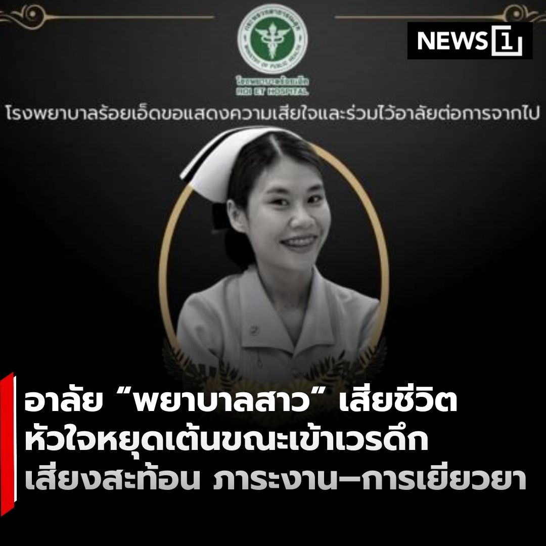 โซเชียลมีเดียร่วมแสดงความอาลัยต่อการเสียชีวิตของพยาบาลวิชาชีพ โรงพยาบาลร้อยเอ็ด หลังเสียชีวิตกะทันหันด้วยอาการหัวใจหยุดเต้นขณะปฏิบัติหน้าที่เวรดึก สร้างความสะเทือนใจในวงกว้าง . เพจประชาสัมพันธ์ โรงพยาบาลร้อยเอ็ด แจ้งว่า พว.ยุภารักษ์ สุขวรรณดี พยาบาลวิชาชีพ หอผู้ป่วยอายุรกรรมหญิง 2 เสียชีวิตในวัยเพียง 30 ปี ระหว่างปฏิบัติงานเวรดึก เหตุการณ์ดังกล่าวทำให้เพื่อนร่วมวิชาชีพและบุคลากรทางการแพทย์ออกมาตั้งคำถามถึงภาระงานที่หนักเกินกำลัง รวมถึงสิทธิประโยชน์และการดูแลสวัสดิการของบุคลากรด่านหน้า . ขณะเดียวกัน ชาวเน็ตจำนวนมากแสดงความห่วงใยต่อครอบครัวผู้เสียชีวิต พร้อมเรียกร้องให้หน่วยงานที่เกี่ยวข้องเร่งพิจารณามาตรการเยียวยา และทบทวนระบบการทำงาน เพื่อป้องกันไม่ให้เกิดเหตุสูญเสียในลักษณะนี้ซ้ำอีก . อ่านต่อ >> https://news1live.com/detail/9690000003122 . #News1live #News1 #พยาบาล #โรงพยาบาล #บุคลากรสาธารณสุข #อาลัย