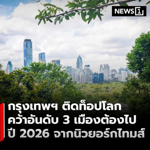 สื่อระดับโลกอย่างนิวยอร์กไทมส์ จัดอันดับ “52 สถานที่ต้องไปเยือนในปี 2026” โดยกรุงเทพมหานครของไทยคว้าอันดับ 3 จากรายชื่อทั้งหมด สะท้อนศักยภาพเมืองท่องเที่ยวระดับโลก . นิวยอร์กไทมส์ให้เหตุผลว่า กรุงเทพมหานครกำลังก้าวสู่เมืองสีเขียวอย่างเป็นรูปธรรม ทั้งการพัฒนาพื้นที่สวนสาธารณะ การเชื่อมต่อสวนเบญจกิติกับสวนลุมพินีด้วยทางเดินสีเขียว รวมถึงการเพิ่มพื้นที่ให้ประชาชนและนักท่องเที่ยวเข้าถึงธรรมชาติกลางเมือง . นอกจากนี้ ยังชูจุดเด่นด้านศิลปวัฒนธรรม ระบบคมนาคม และการพัฒนาเมืองอัจฉริยะ ซึ่งช่วยยกระดับประสบการณ์ของผู้มาเยือน และตอกย้ำบทบาทกรุงเทพฯ ในฐานะจุดหมายสำคัญบนเวทีโลก . อ่านต่อ >> https://news1live.com/detail/9690000002968 . #News1live #News1 #กรุงเทพมหานคร #ท่องเที่ยวโลก #NewYorkTimes #52PlacesToGo