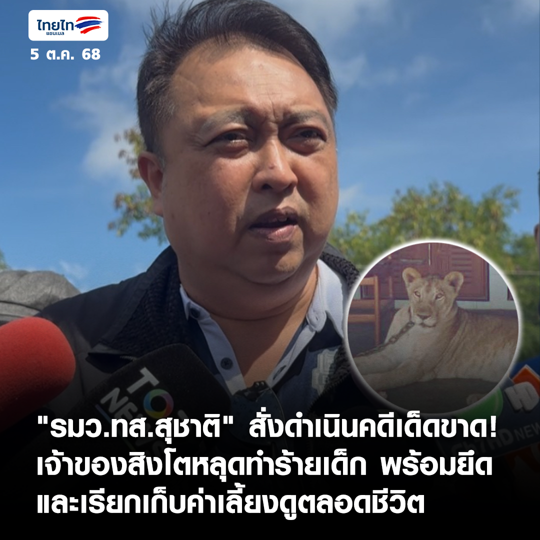 ​"รมว.ทส.สุชาติ" สั่งดำเนินคดีเด็ดขาด! เจ้าของสิงโตหลุดทำร้ายเด็ก​ พร้อมยึดและเรียกเก็บค่าเลี้ยงดูตลอดชีวิต https://www.thai-tai.tv/news/21765/ . #สิงโตหลุด #สุชาติชมกลิ่น #กรมอุทยานฯ #สัตว์ป่าคุ้มครอง #กาญจนบุรี #ดำเนินคดีเด็ดขาด #ความปลอดภัยสาธารณะ #พรบสงวนและคุ้มครองสัตว์ป่า