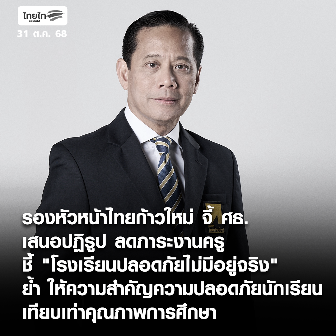 • รองหัวหน้าไทยก้าวใหม่ จี้ ศธ. เสนอปฏิรูป ลดภาระงานครู ชี้ "โรงเรียนปลอดภัยไม่มีอยู่จริง" ย้ำ ให้ความสำคัญความปลอดภัยนักเรียน เทียบเท่าคุณภาพการศึกษา