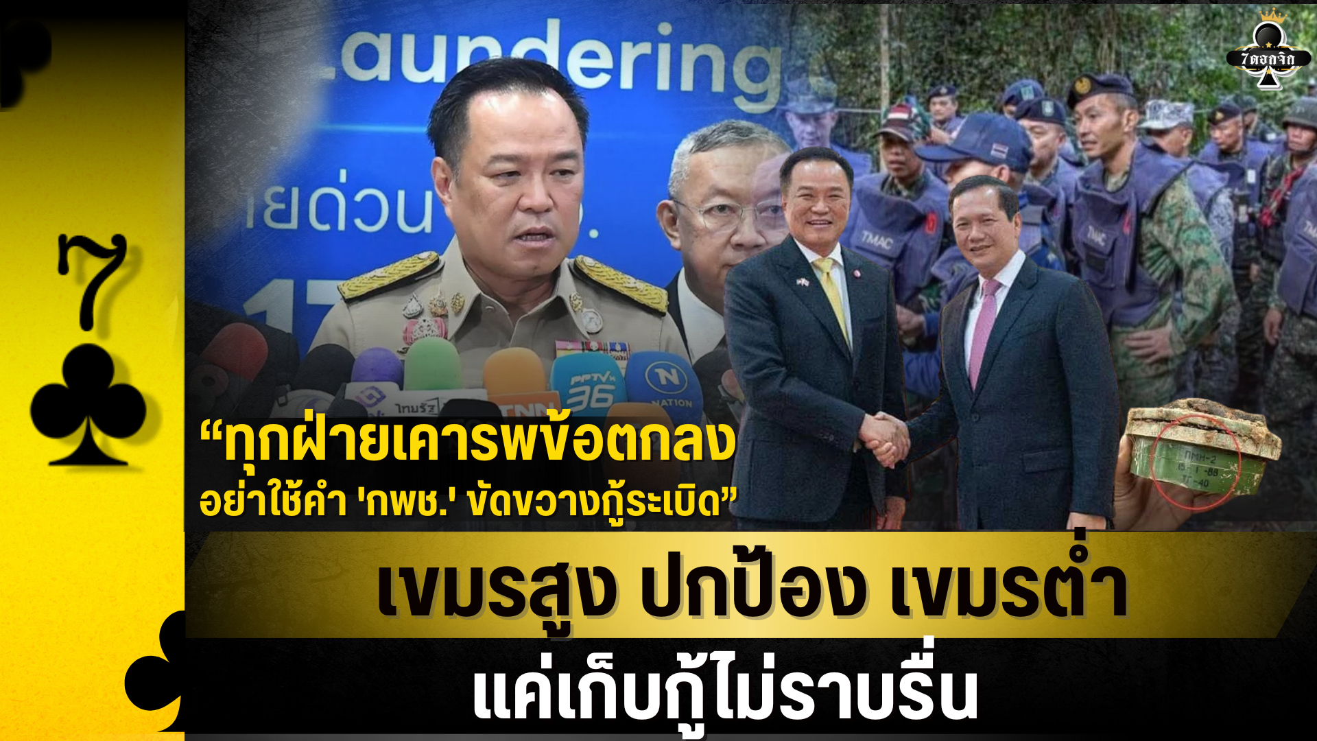 ♣ จากเคยประกาศ "ไม่ยอมเสียดินแดนแม้แต่ตารางเซ็นเดียว" มาวันนี้ท่าทีอ่อนยวบ ถึงขั้นอยากให้ใช้คำว่า เก็บกู้ระเบิดไม่ราบรื่น แทนคำว่า กัมพูชาขัดขวางกู้ระเบิด #7ดอกจิก