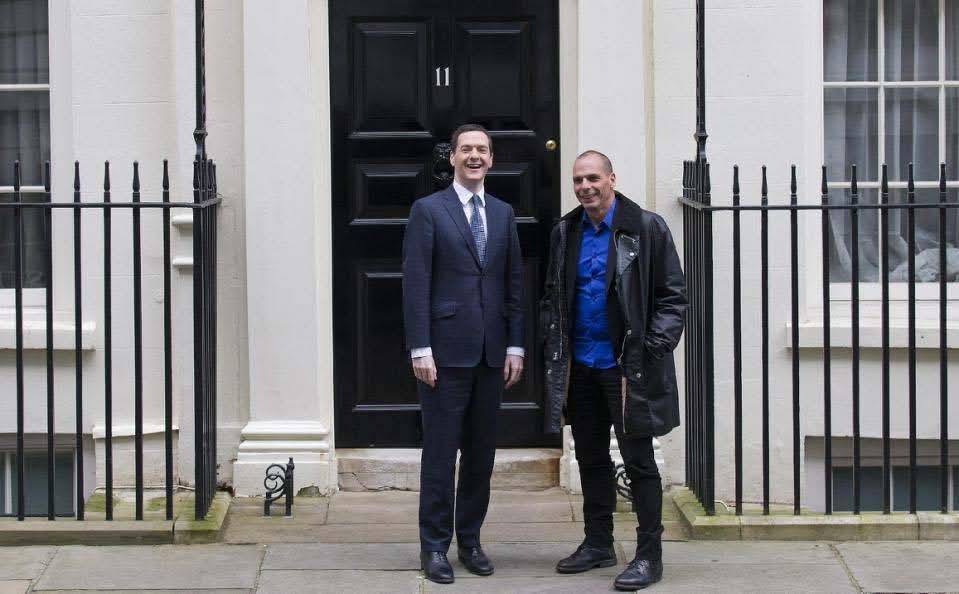 ฝ่ายผู้ท้าชิง รัฐมนตรีคลังมาดเซอร์ คุณน้อง Yanis Varoufakis ของผม นี่ไม่ธรรมดานะ จบเศรษฐศาสตร์จาก มหาวิทยาล้ย Exter ของอังกฤษ แกมีนัดกับรัฐมนตรีคลังผู้ดีอังกฤษ George Osborne ไอ้หมอนี่ดีกว่าลูกพี่หน่อย เวลาพูดไม่จีบปาก คุณน้องYanis ไปพบรัฐมนตรีผู้ดี ที่บ้านเลขที่ 10 ถนนดาวนิ่ง ก็ทำเนียบนายกนั่นแหละ คุณน้องใส่เสื้อหนัง เท่ สุดขีดไปเลย ข้างในเป็นเสื้อเชิร์ตสีฟ้า และไม่ผูกเนคไท!