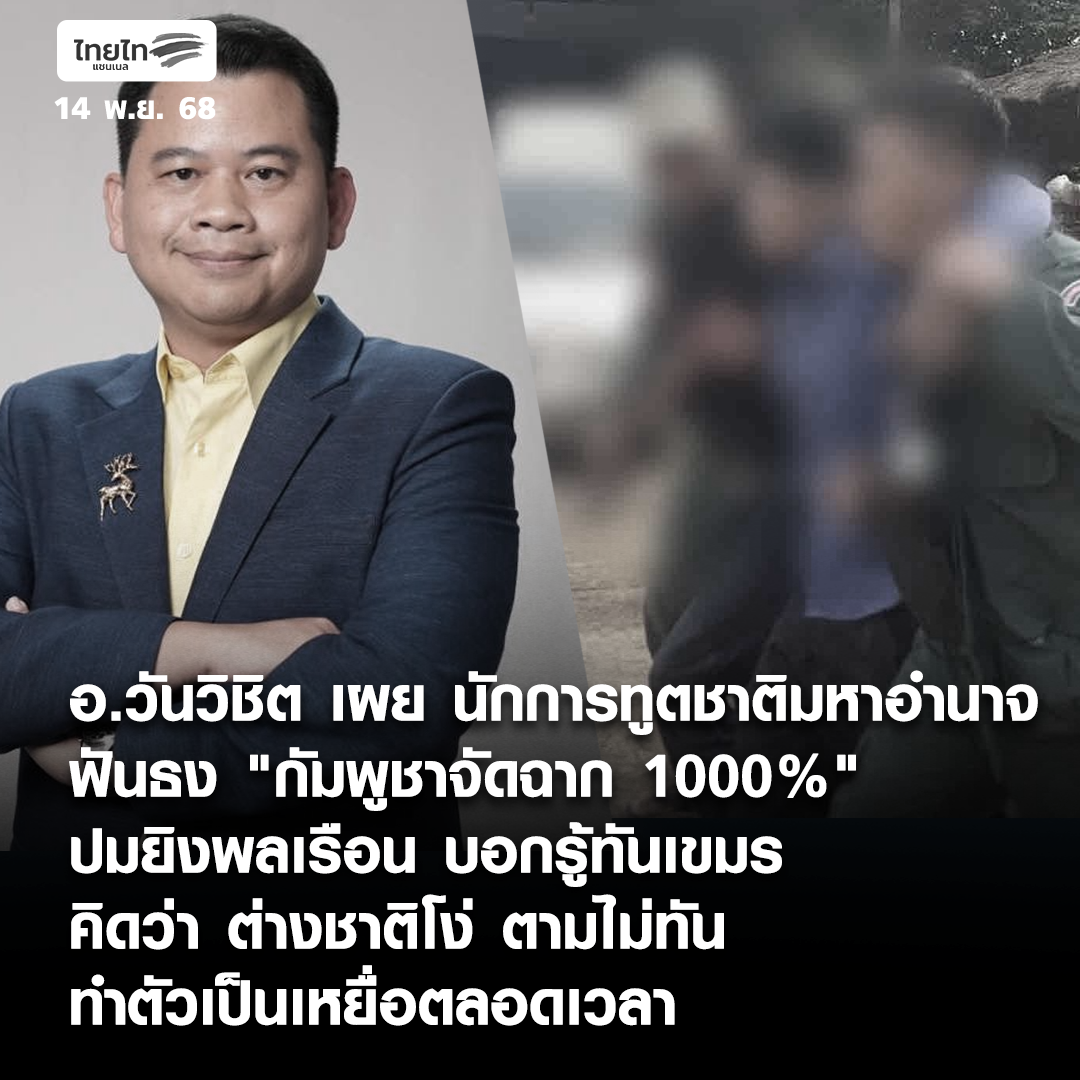 • อ.วันวิชิต เผย นักการทูตชาติมหาอำนาจฟันธง "กัมพูชาจัดฉาก 1000%" ปมยิงพลเรือน บอกรู้ทันเขมร คิดว่า ต่างชาติโง่ ตามไม่ทัน ทำตัวเป็นเหยื่อตลอดเวลา