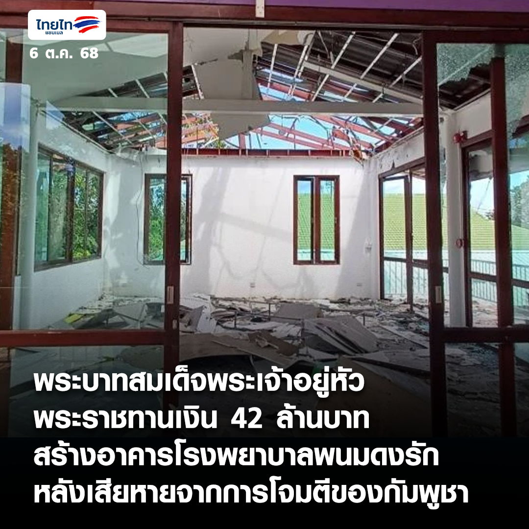 • พระบาทสมเด็จพระเจ้าอยู่หัว พระราชทานเงิน 42 ล้านบาท สร้างอาคารโรงพยาบาลพนมดงรัก หลังเสียหายจากการโจมตีของกัมพูชา