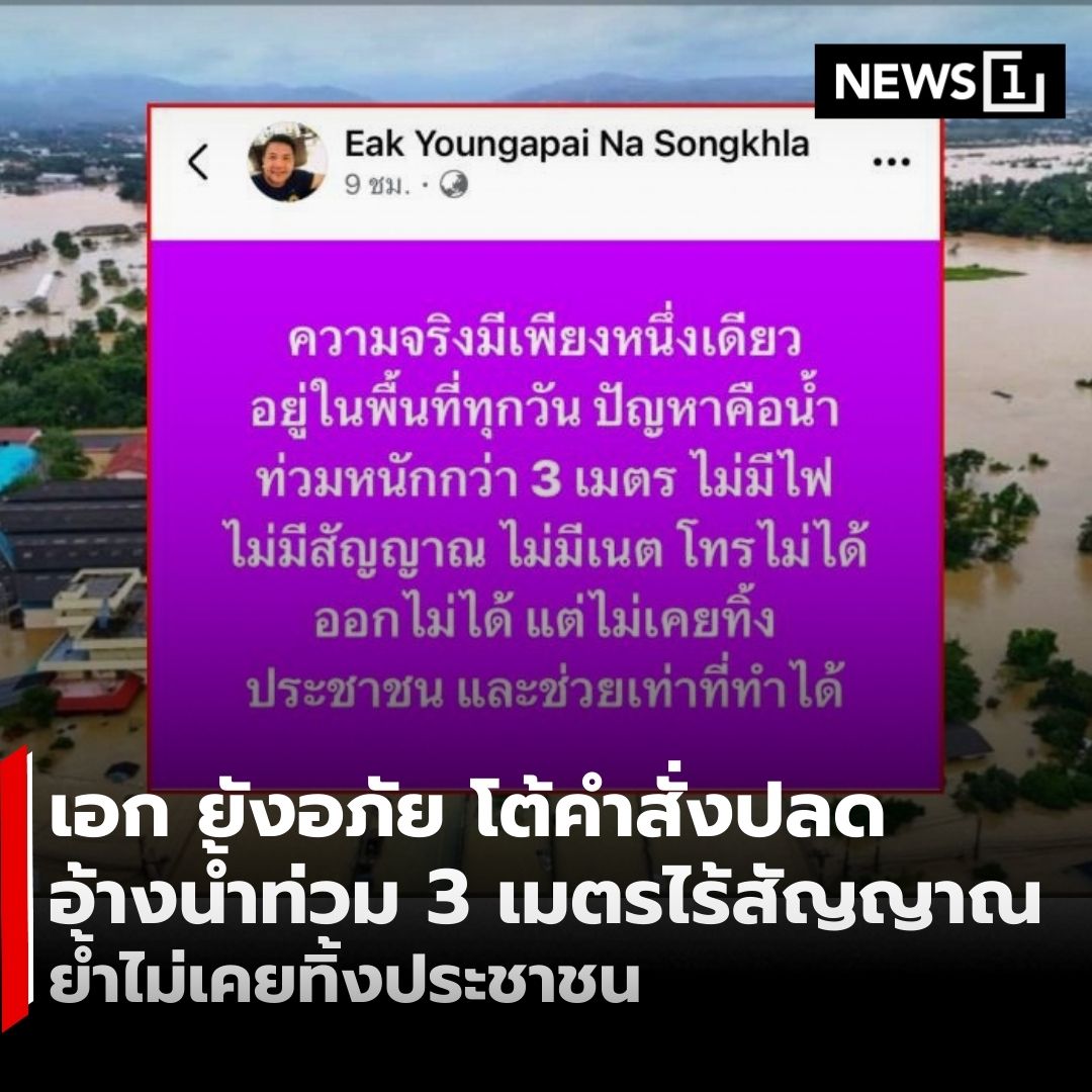 อดีตนายอำเภอหาดใหญ่ “เอก ยังอภัย” โต้กลับหลังถูกกรมการปกครองสั่งให้ออกจากราชการ ปมละทิ้งพื้นที่วิกฤตน้ำท่วมระดับ 4 ยืนยันอยู่ในพื้นที่ทุกวัน แต่เจอน้ำท่วมสูงกว่า 3 เมตร ไร้ไฟ-ไร้สัญญาณสื่อสาร ทำให้ติดต่อไม่ได้ ชี้ไม่เคยทิ้งประชาชน . อ่านต่อ… https://news1live.com/detail/9680000114010 . #เอกยังอภัย #หาดใหญ่ #น้ำท่วมสงขลา #กรมการปกครอง #อุทกภัย #News1live #News1