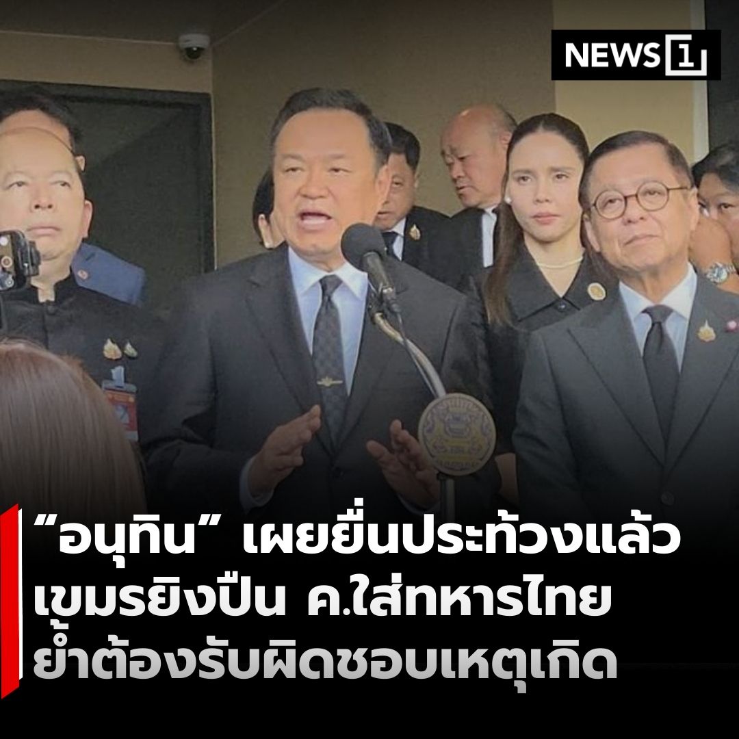 • นายอนุทิน ชาญวีรกูล นายกรัฐมนตรีและ รมว.มหาดไทย เปิดเผยว่า รัฐบาลได้เรียกฝ่ายความมั่นคงรายงานสถานการณ์ หลังเกิดเหตุทหารกัมพูชายิงกระสุนปืน ค. เข้ามาตกในเขตแดนไทย ส่งผลให้ทหารไทยได้รับบาดเจ็บ 1 นาย ที่ช่องบก จังหวัดอุบลราชธานี.