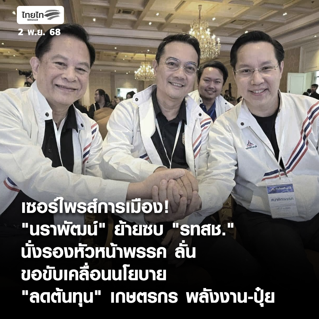 เซอร์ไพรส์การเมือง! "นราพัฒน์" ย้ายซบ "รทสช." นั่งรองหัวหน้าพรรค ลั่น ขอขับเคลื่อนนโยบาย "ลดต้นทุน" เกษตรกร พลังงาน-ปุ๋ย