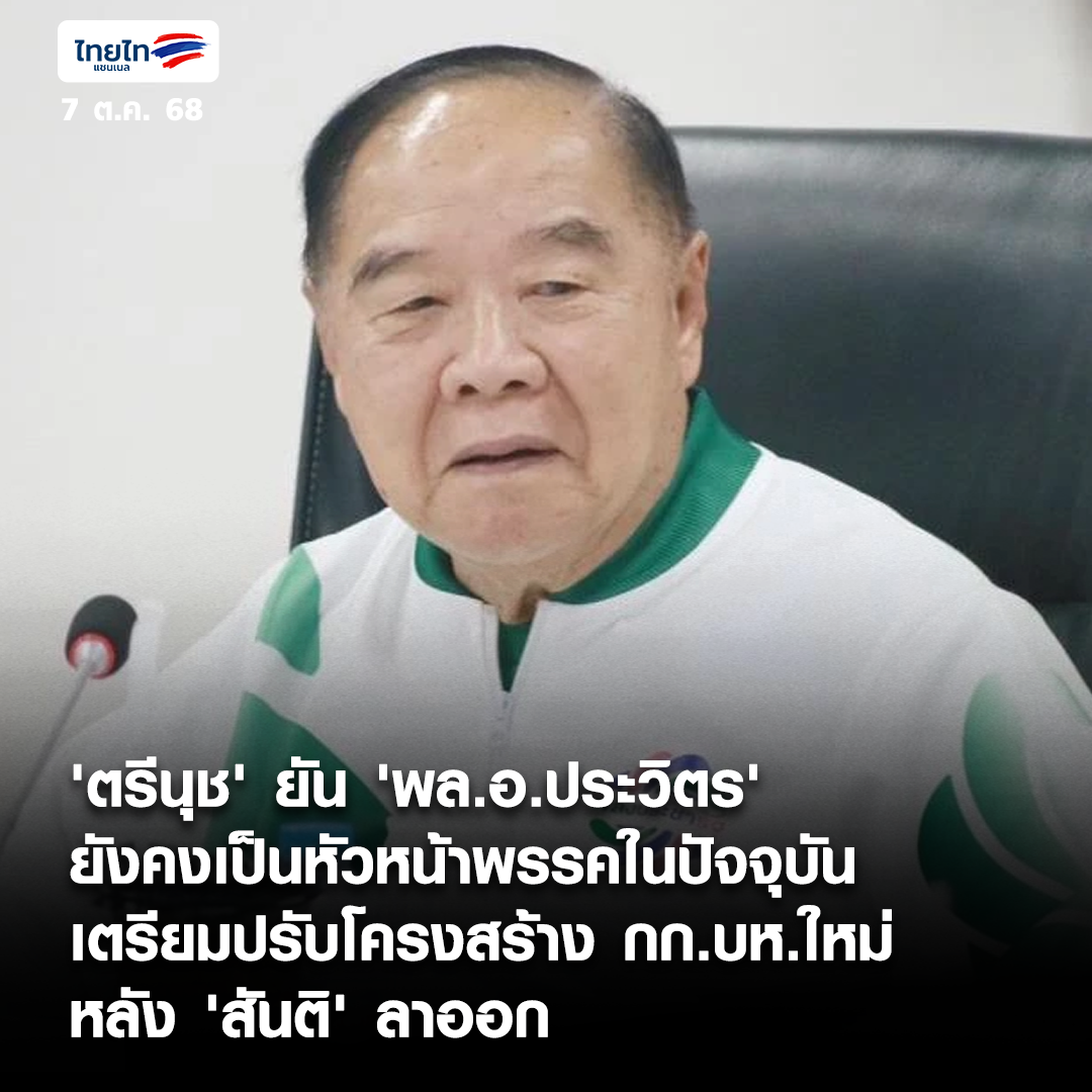 • 'ตรีนุช' ยัน 'พล.อ.ประวิตร' ยังคงเป็นหัวหน้าพรรคในปัจจุบัน เตรียมปรับโครงสร้าง กก.บห.ใหม่ หลัง 'สันติ' ลาออก