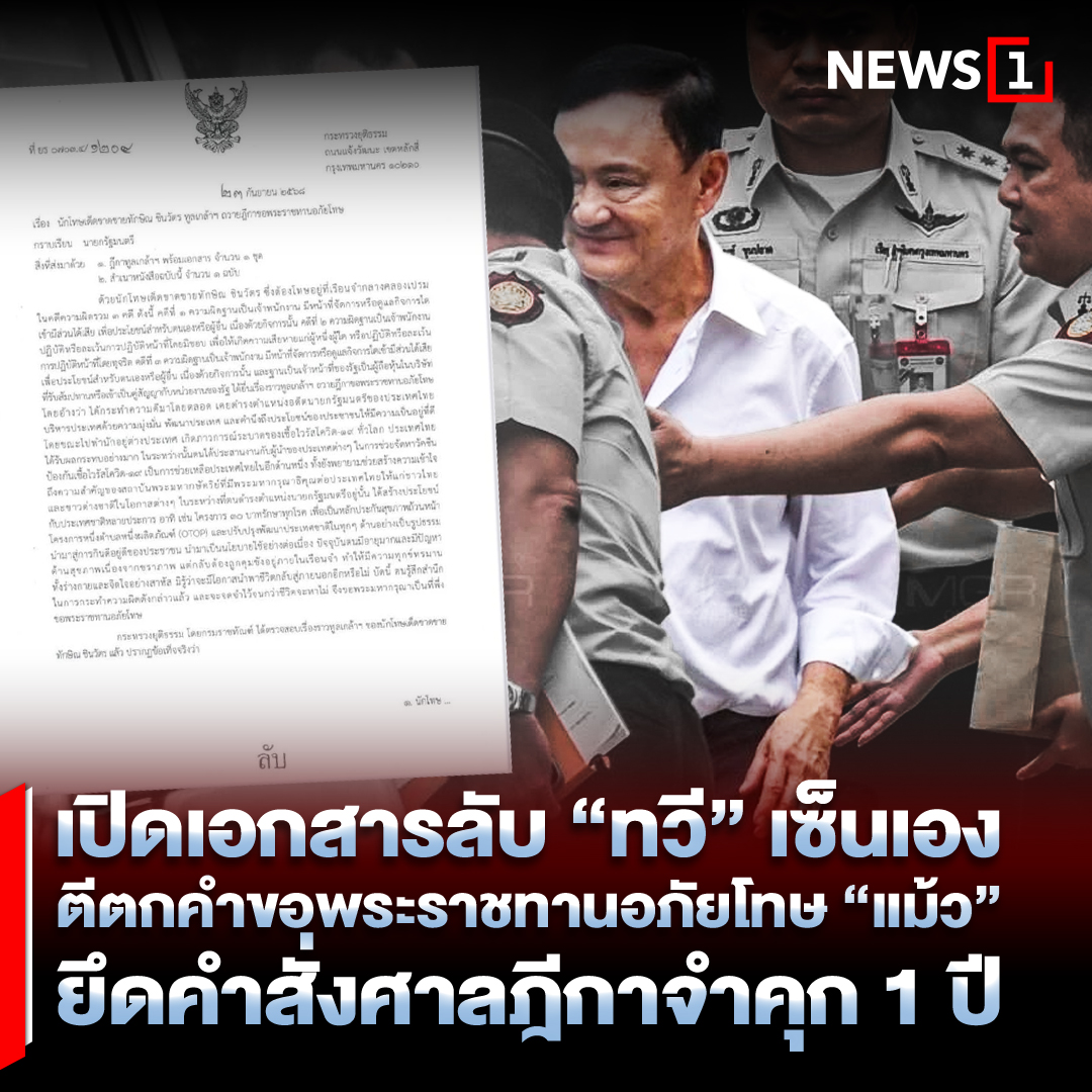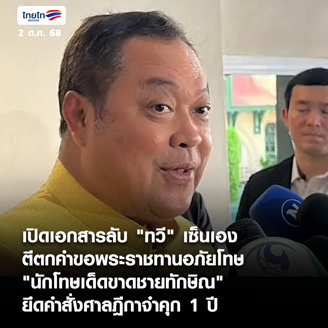 • เปิดเอกสารลับ "ทวี" เซ็นเองตีตกคำขอพระราชทานอภัยโทษ "นักโทษเด็ดขาดชายทักษิณ" ยึดคำสั่งศาลฎีกาจำคุก 1 ปี