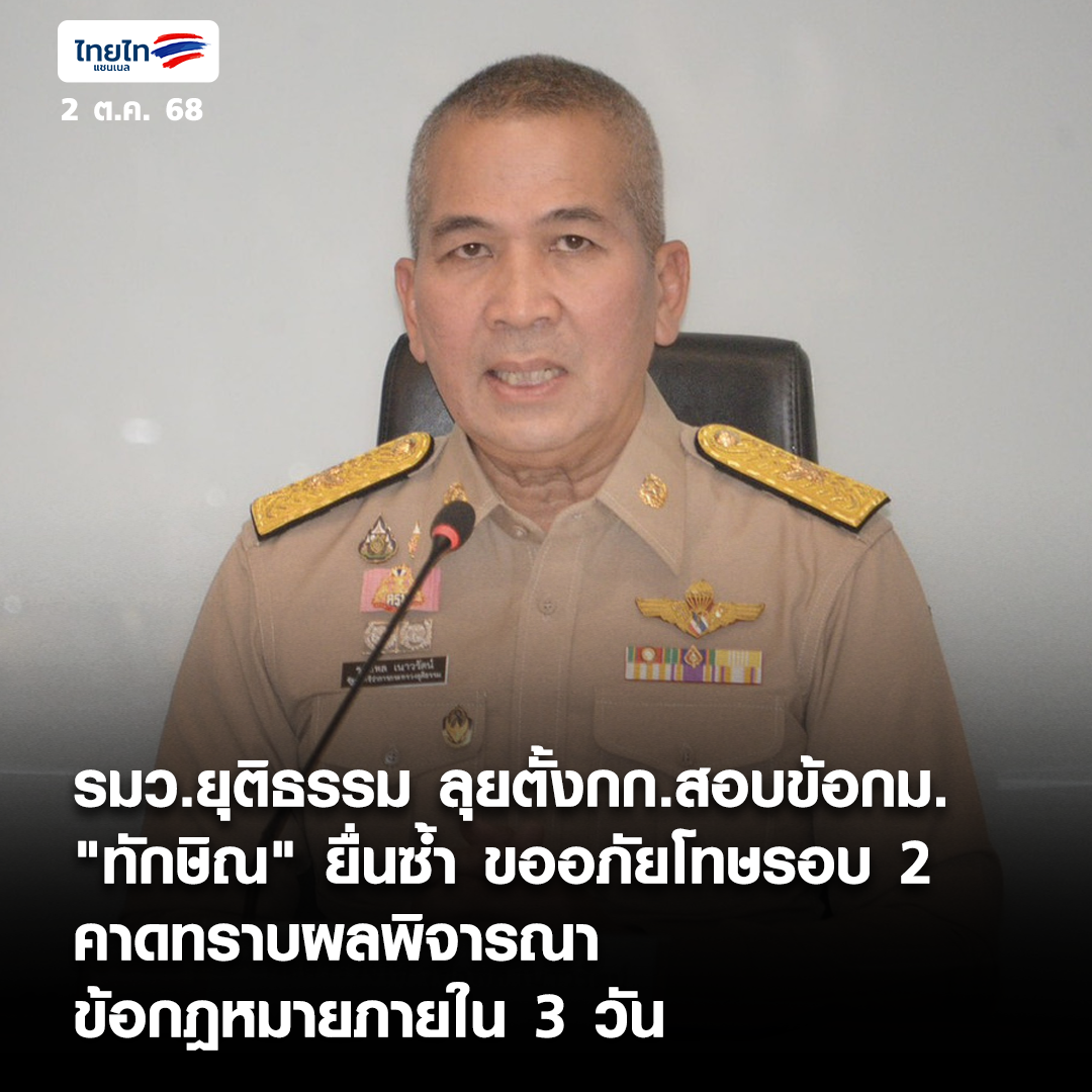 รมว.ยุติธรรม ลุยตั้งกก.สอบข้อกม. "ทักษิณ" ยื่นซ้ำ ขออภัยโทษรอบ 2 คาดทราบผลพิจารณาข้อกฎหมายภายใน 3 วัน https://www.thai-tai.tv/news/21722/ . #ทักษิณชินวัตร #ขอพระราชทานอภัยโทษ #กระทรวงยุติธรรม #รุทธพลเนาวรัตน์ #การเมือง #ข้อกฎหมาย #ไทยไท