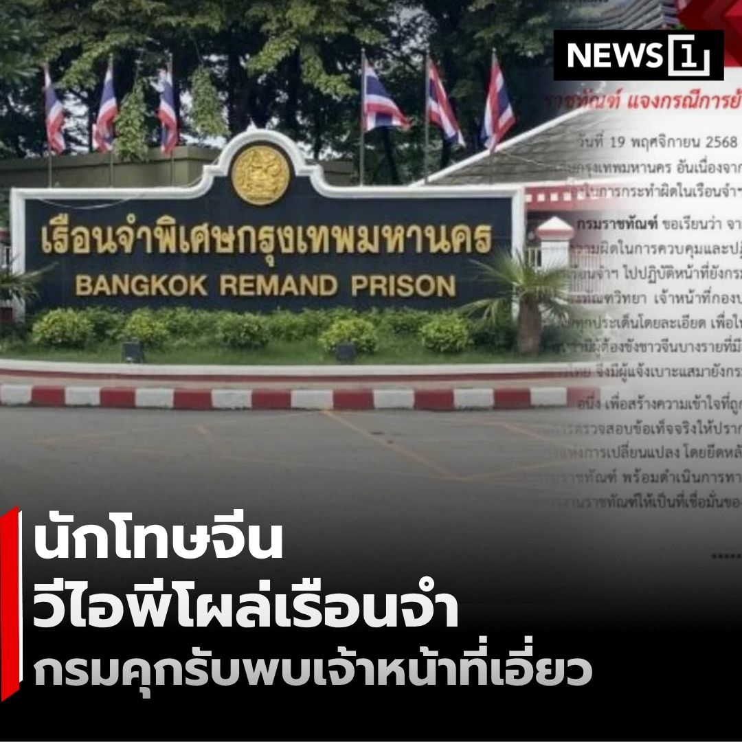• "กรมคุก" ชี้แจงหลังบุกค้นเรือนจำพิเศษกรุงเทพฯ พบผู้ต้องขังจีนบางรายมีอิทธิพลเหนือผู้ต้องขังอื่น และพบเจ้าหน้าที่ร่วมกระทำผิด สั่งย้าย ผบ.เรือนจำ–เจ้าหน้าที่ที่เกี่ยวข้อง พร้อมตั้งทีมสอบข้อเท็จจริงทุกประเด็น