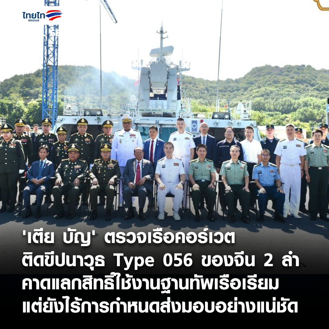 • 'เตีย บัญ' ตรวจเรือคอร์เวตติดขีปนาวุธ Type 056 ของจีน 2 ลำ คาดแลกสิทธิ์ใช้งานฐานทัพเรือเรียม แต่ยังไร้การกำหนดส่งมอบอย่างแน่ชัด