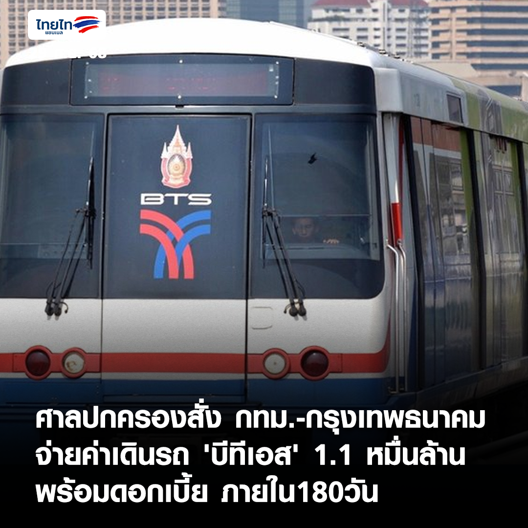 ศาลปกครองสั่ง กทม.-กรุงเทพธนาคม จ่ายค่าเดินรถ 'บีทีเอส' 1.1 หมื่นล้าน พร้อมดอกเบี้ย ภายใน180วัน https://www.thai-tai.tv/news/21665/ . #รถไฟฟ้าสายสีเขียว #ศาลปกครอง #กทม #กรุงเทพธนาคม #บีทีเอส #ค่าเดินรถ #หนี้รถไฟฟ้า #การเมืองไทย #1.1หมื่นล้าน