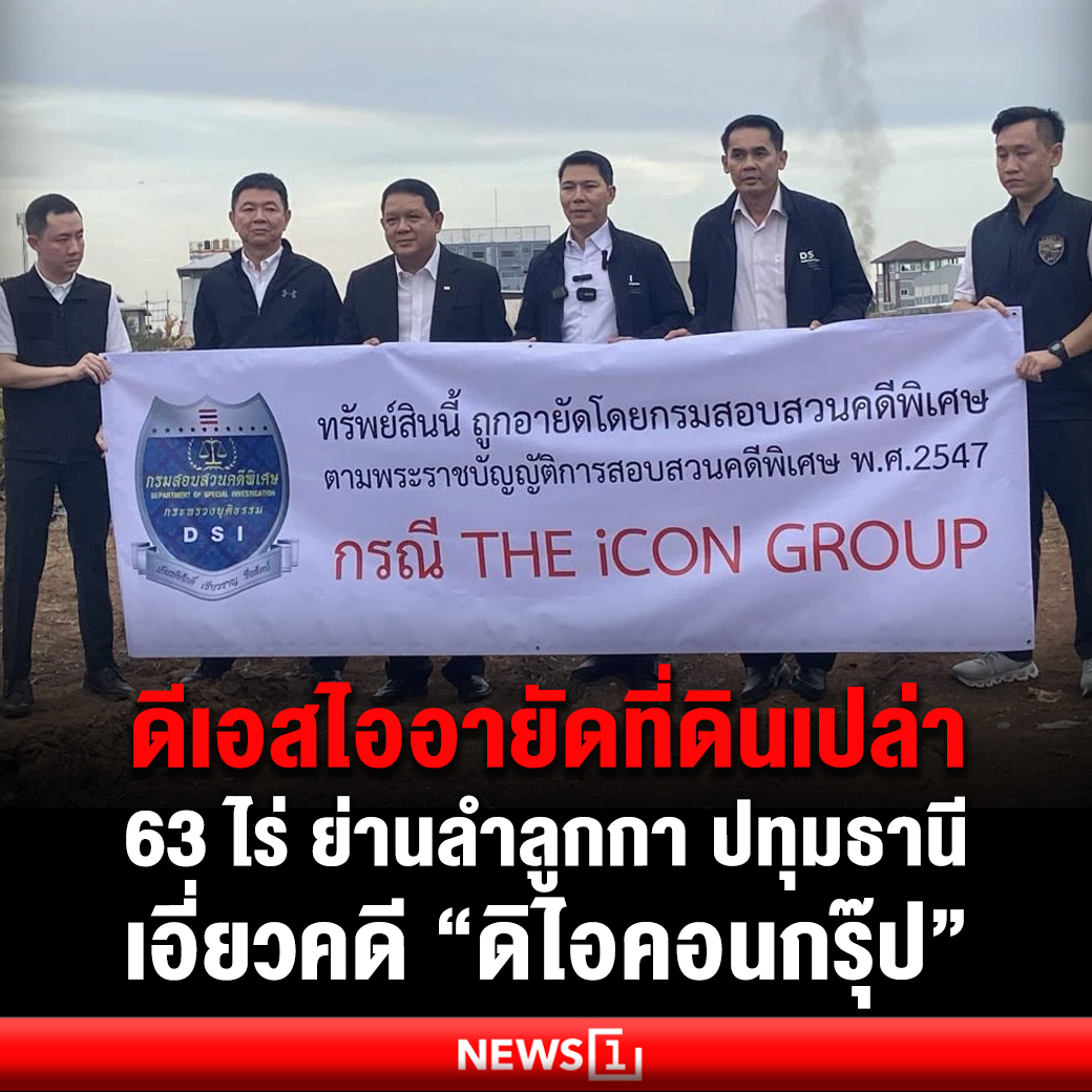 • รักษาการราชการแทนอธิบดีกรมสอบสวนคดีพิเศษ (ดีเอสไอ) พร้อมคณะ เข้าอายัดที่ดินเปล่า 63 ไร่ ย่านลำลูกกา พบเป็นทรัพย์สินที่เกี่ยวข้อง บ.ดิไอคอน กรุ๊ป ยันประสานงานร่วมตำรวจทำคดี