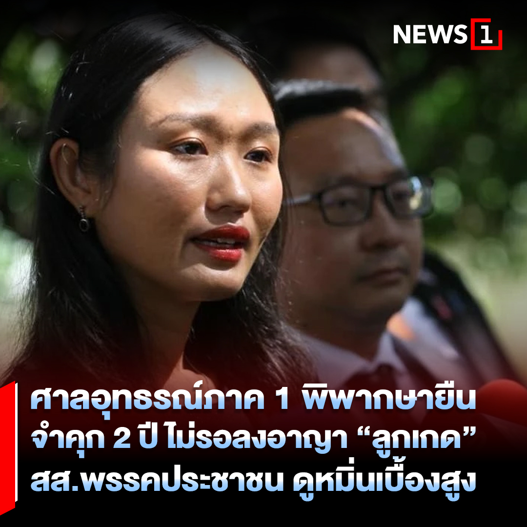 • ศาลอุทธรณ์ภาค 1 พิพากษายืนจำคุก 2 ปี ไม่รอลงอาญา "ลูกเกด-ชลธิชา " สส.พรรคประขาชน จ.ปทุมธานี ดูหมิ่นสถาบันเบื้องสูง