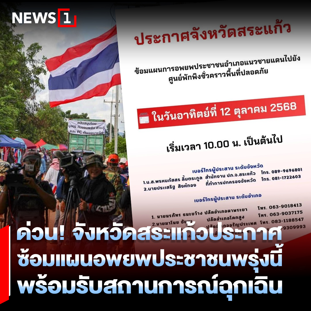 จังหวัดสระแก้วประกาศซ้อมแผนอพยพประชาชนชายแดนไปยังศูนย์พักพิงชั่วคราวไปยังศูนย์พักพิงชั่วคราว เตรียมความพร้อมรับสถานการณ์ฉุกเฉิน วันอาทิตย์ที่ 12 ต.ค.นี้ อ่านต่อ..https://news1live.com/detail/9680000097410 #News1live #News1 #Sondhitalk #SondhiX #คุยทุกเรื่องกับสนธิ #สนธิเล่าเรื่อง #Thaitimes #กัมพูชายิงก่อน #ไทยนี้รักสงบแต่ถึงรบไม่ขลาด #CambodiaOpenedFire #เขมรลักลอบวางระเบิด
