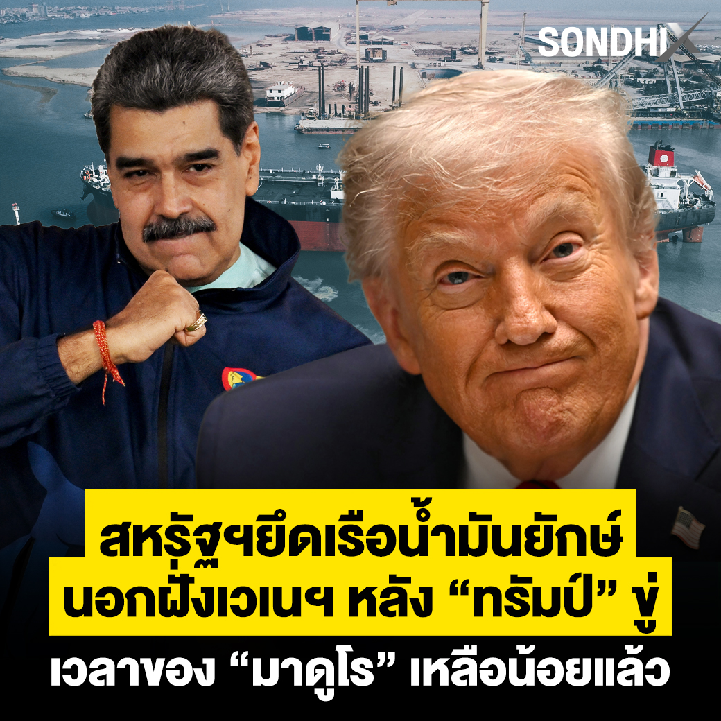 • สหรัฐฯยึดเรือบรรทุกน้ำมันขนาดใหญ่ลำหนึ่งนอกชายฝั่งเวเนซุเอลา จากการเปิดเผยของประธานาธิบดีโดนัลด์ ทรัมป์ ในวันพุธ (10 ธ.ค.) ยกระดับความตึงเครียดระหว่างวอชิงตันและการากัสให้เดือดดาลมากขึ้นไปอีก ท่ามกลางคำเตือนของผู้นำอเมริกาที่เตือนว่า วันเวลาของประธานาธิบดีนิโคลัส มาดูโร เหลือน้อยลงทุกขณะ