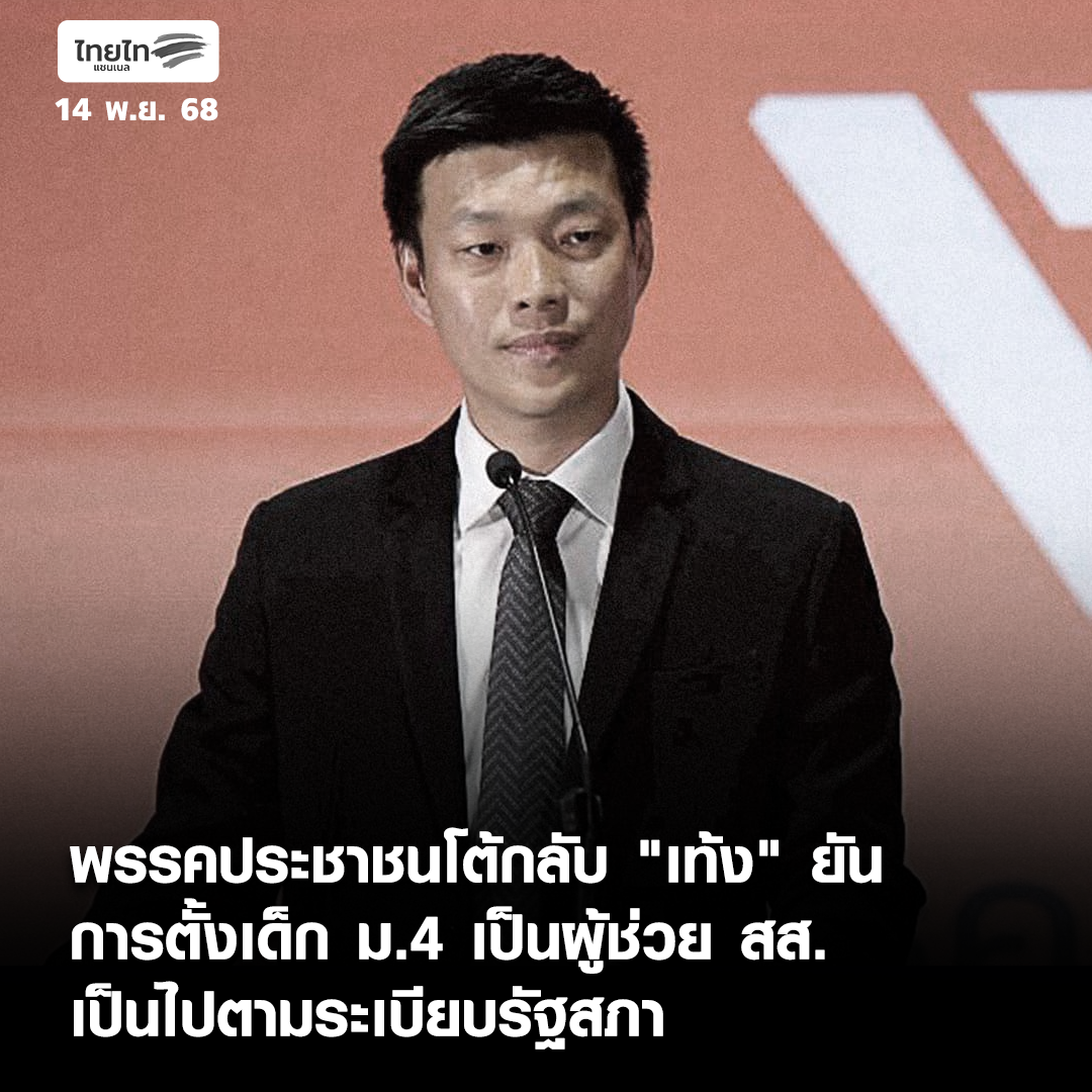 • พรรคประชาชนโต้กลับ "เท้ง" ยันการตั้งเด็ก ม.4 เป็นผู้ช่วย สส. เป็นไปตามระเบียบรัฐสภา