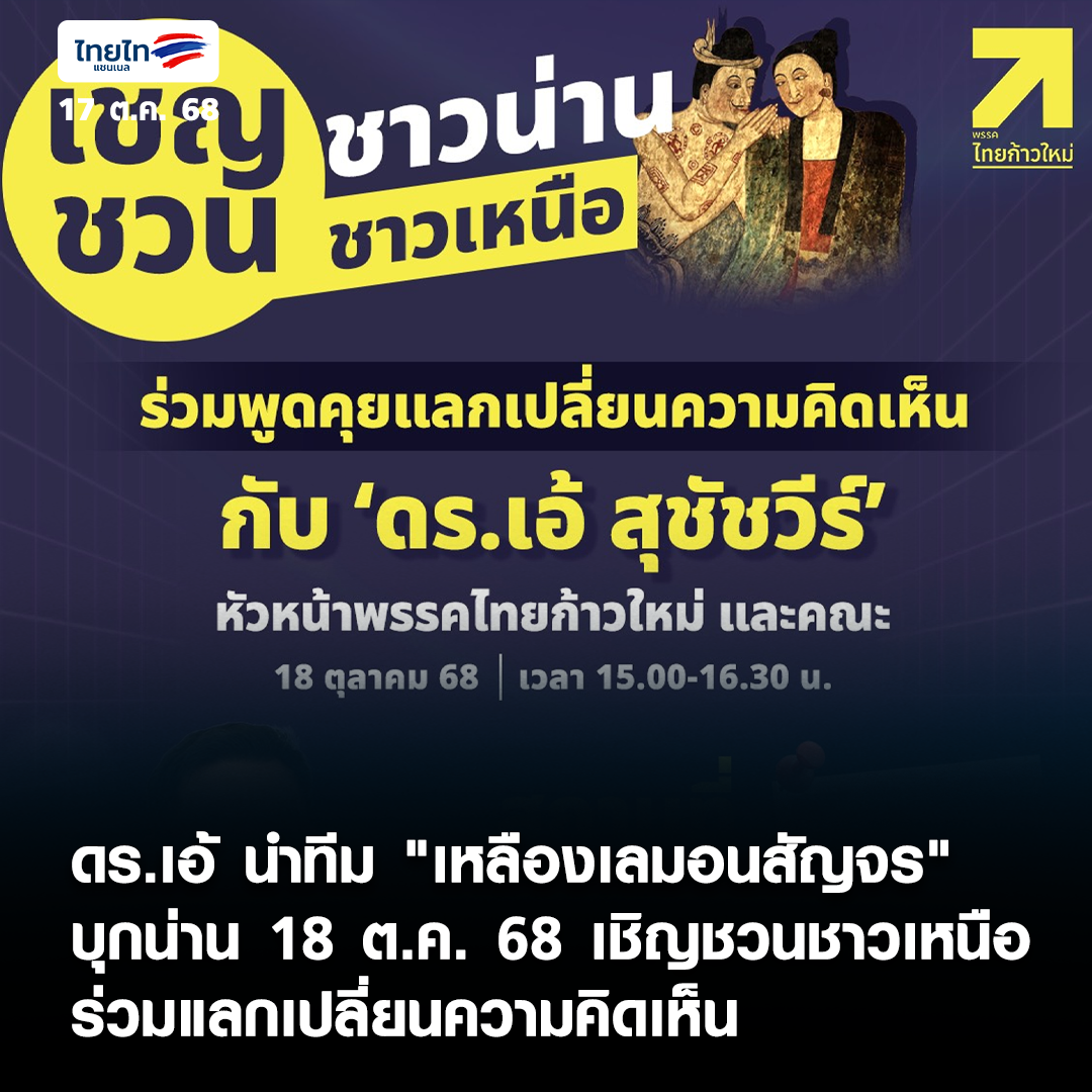 ดร.เอ้ นำทีม "เหลืองเลมอนสัญจร" บุกน่าน 18 ต.ค. 68 เชิญชวนชาวเหนือ ร่วมแลกเปลี่ยนความคิดเห็น