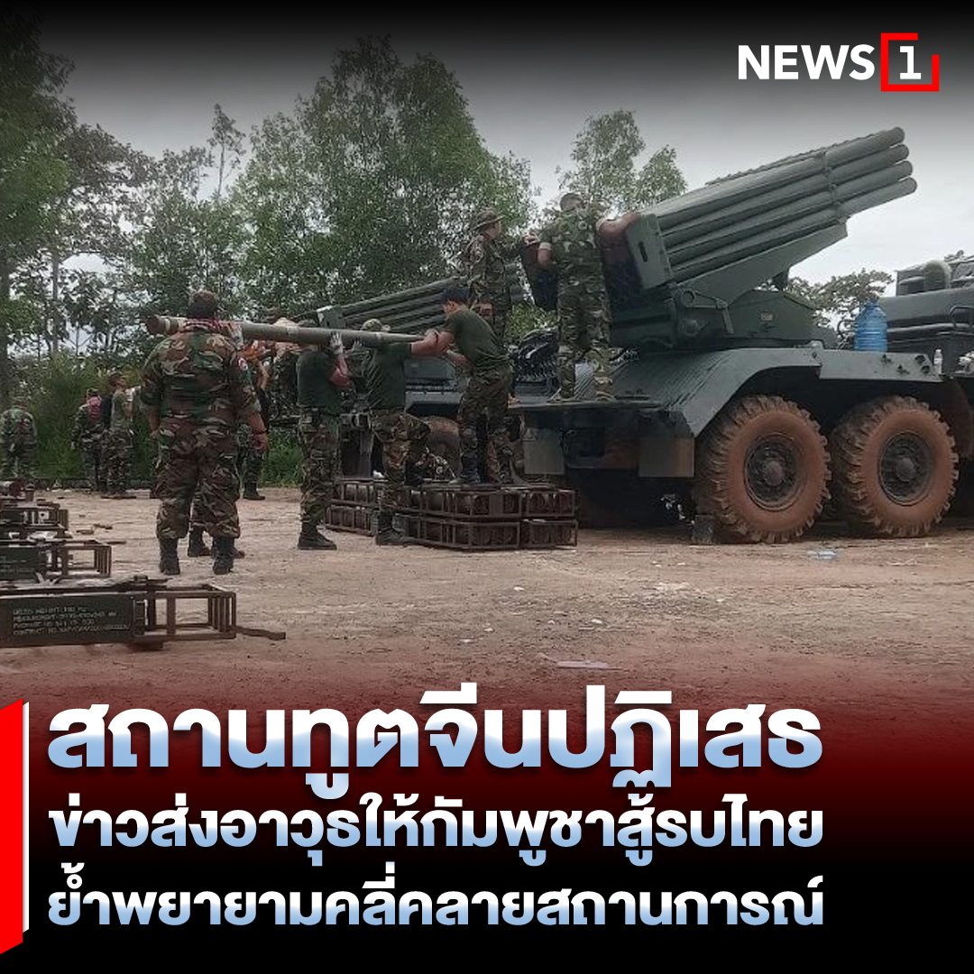• สถานเอกอัครราชทูตจีนปฏิเสธรายงานข่าวจีนส่งอาวุธให้กัมพูชาเพื่อใช้สู้รบกับไทย แจงอาวุธจีนในกัมพูชามาจากโครงการความร่วมมือก่อนเกิดความขัดแย้ง ย้ำจีน ในฐานะเพื่อบ้านฉันมิตรของทั้งสองประเทศ ไม่มีผลประโยชน์ส่วนตัวในความขัดแย้งชายแดนไทย-กัมพูชา ขอเรียกร้องผู้เกี่ยวข้องร่วมกันคลี่คลายสถานการณ์ แทนที่จะเผยแพร่ข่าวเท็จ