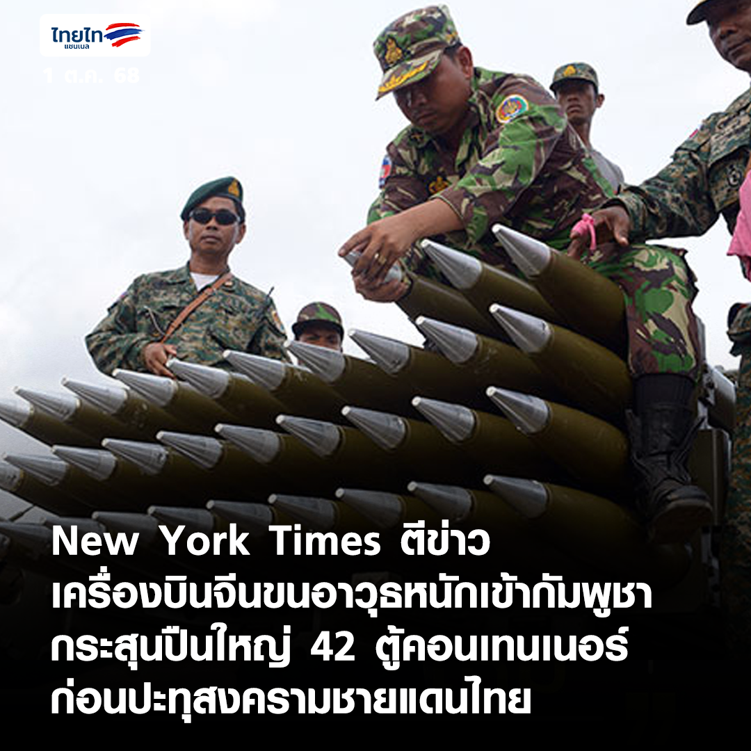 New York Times ตีข่าว เครื่องบินจีนขนอาวุธหนักเข้ากัมพูชา กระสุนปืนใหญ่ 42 ตู้คอนเทนเนอร์ ก่อนปะทุสงครามชายแดนไทย https://www.thai-tai.tv/news/21712/ . #ความขัดแย้งไทยกัมพูชา #อาวุธจีน #ฐานทัพเรือเรียม #สงครามชายแดน #NewYorkTimes #Y20 #จีนกับอาเซียน #ไทยไท