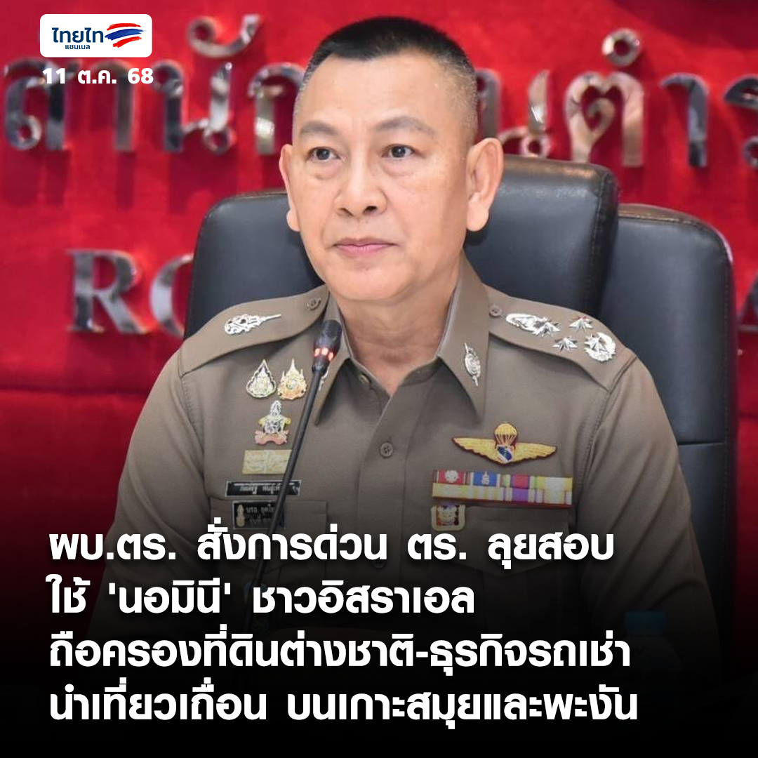 • ผบ.ตร. สั่งการด่วน ตร. ลุยตรวจสอบการใช้ 'นอมินี' ชาวอิสราเอล ถือครองที่ดินต่างชาติ-ธุรกิจรถเช่า-นำเที่ยวเถื่อน บนเกาะสมุยและพะงัน
